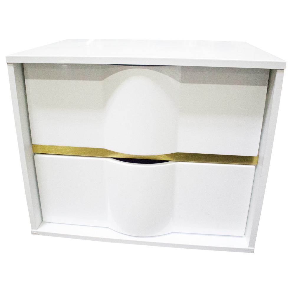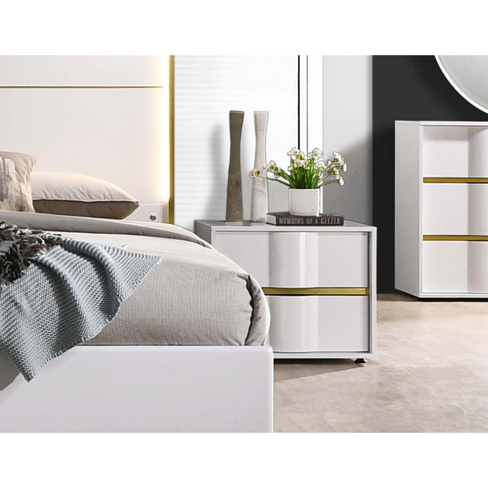 Finish: White with Gold Trimming Material: Poplar Wood, Engineered Wood, Lacquer, High Gloss Includes nightstand No asssembly required