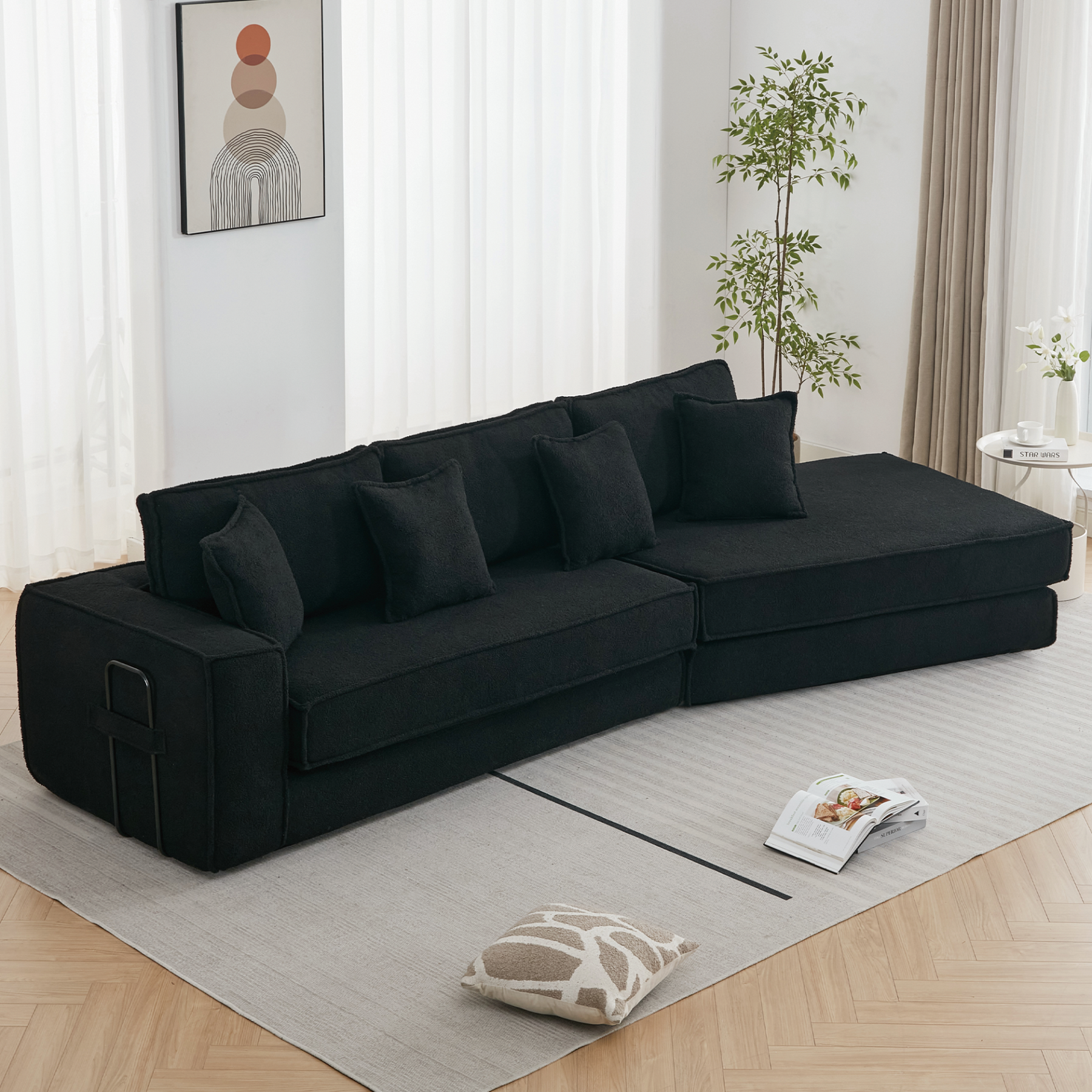 - Includes back cushions and throw pillows to enhance comfort and styling flexibility.