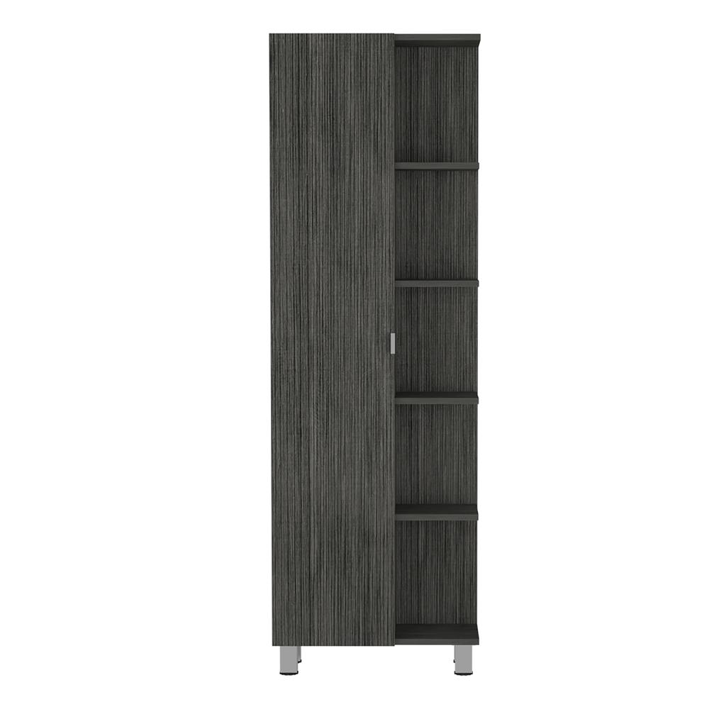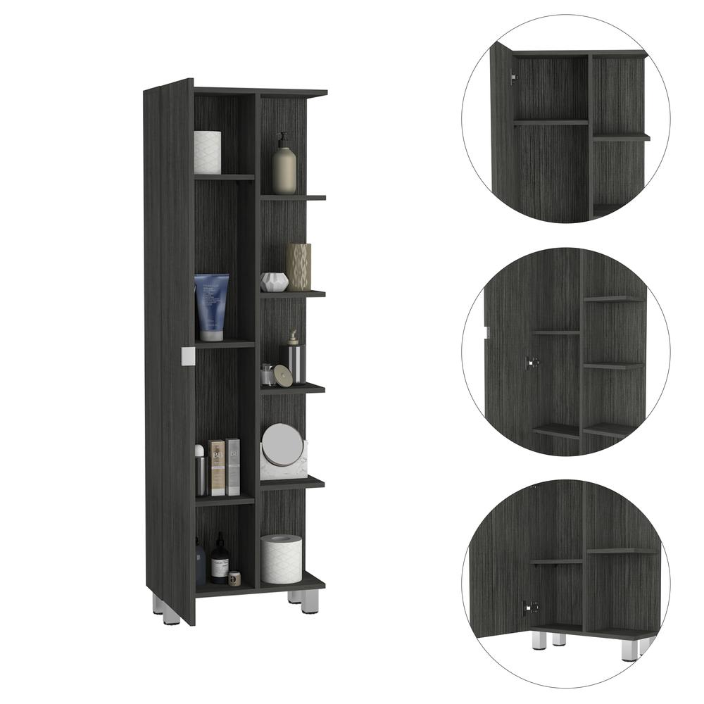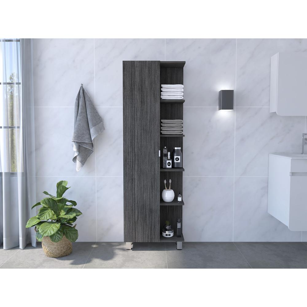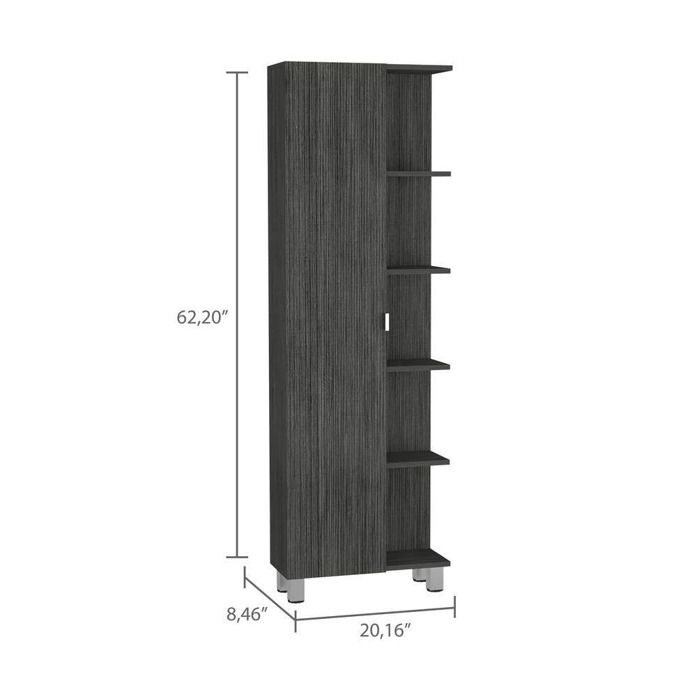 62" High Bathrrom Cabinet Four Exterior Open Shelves One Cabinet With Threee Interior adjustable Shelves Perfect additional storage cabinet for rooms with limited space. 1 Year Warranty