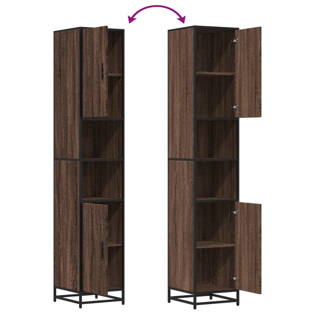 This tall bathroom cabinet perfectly blends function and style, giving you a smart storage option for any bathroom. It's made from engineered wood and metal, with a rich brown oak finish that looks fab with various decor styles, while keeping your toiletries and essentials organized.