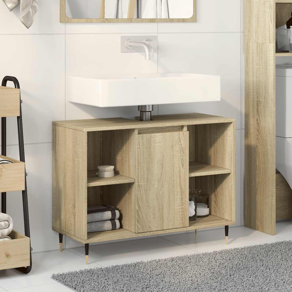 This Modern Sonoma Oak Bathroom Cabinet combines function with modern style, making it a must-have for your bathroom. With its sleek design, it provides plenty of storage for toiletries and bathroom items, while also sprucing up the look of the space for a neat and tidy vibe that fits in with various styles.