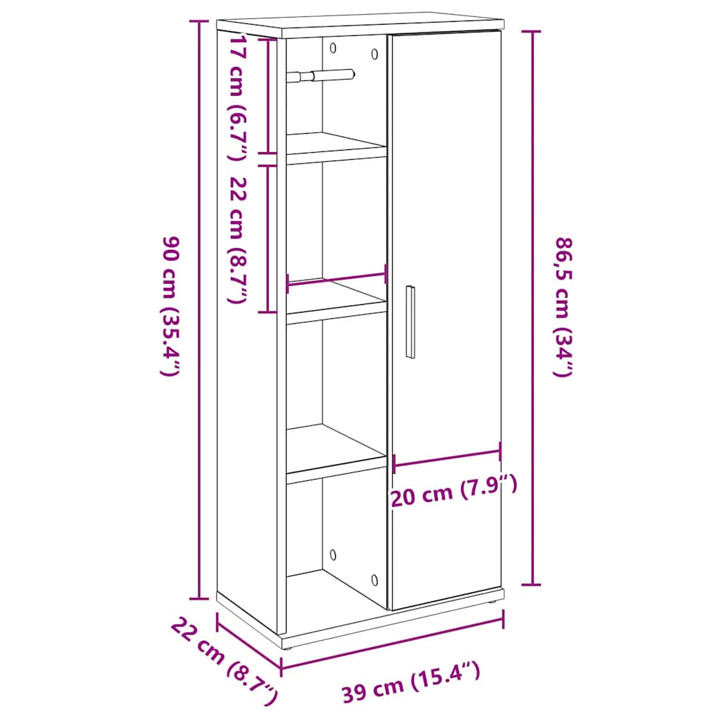 This bathroom cabinet redefines elegance and practicality by seamlessly integrating storage solutions into your bathroom decor. Its modern design, finished in a smoked oak hue, elevates the overall ambiance, making it an exquisite choice for enhancing any bathroom setting while providing much-needed functionality.