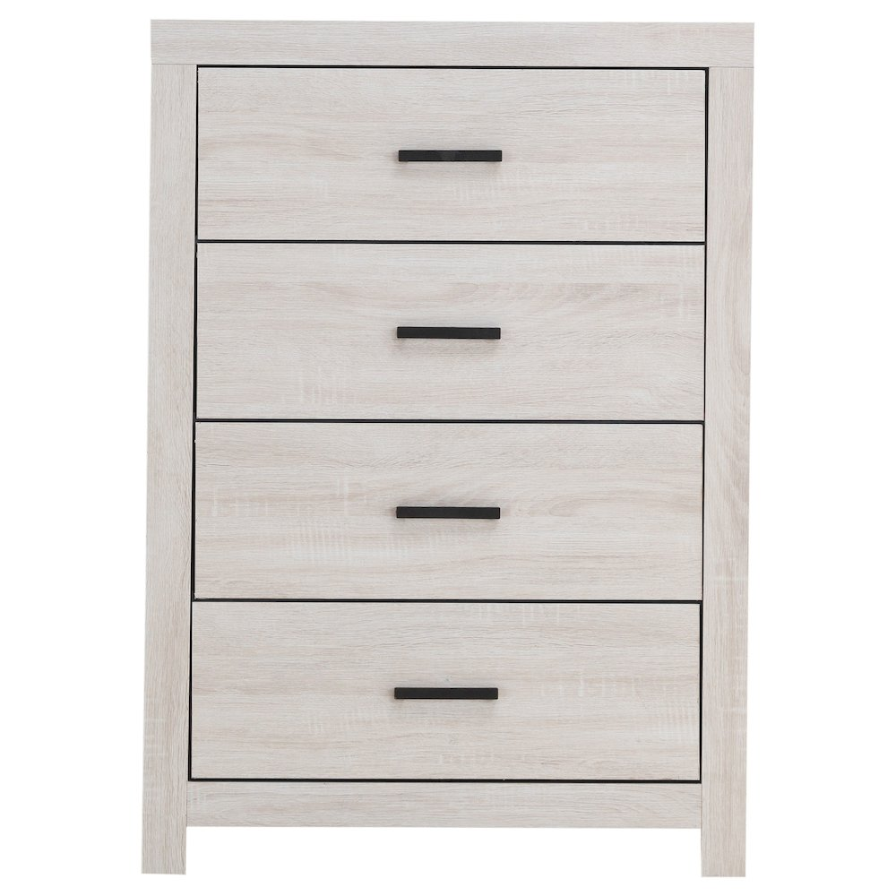 Made with selected 3D paper veneer in Coastal White that is easy to maintain Accented with dark bronze matte pull handle