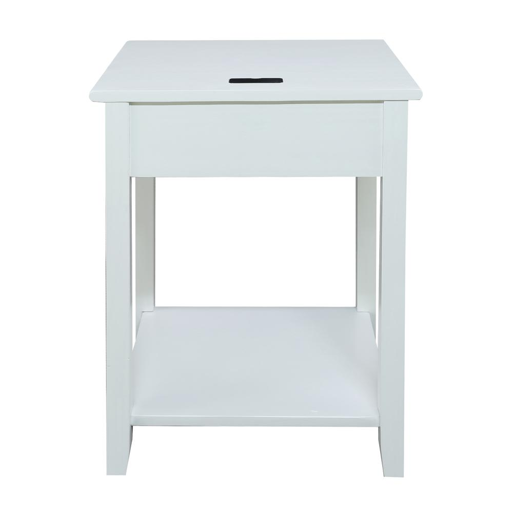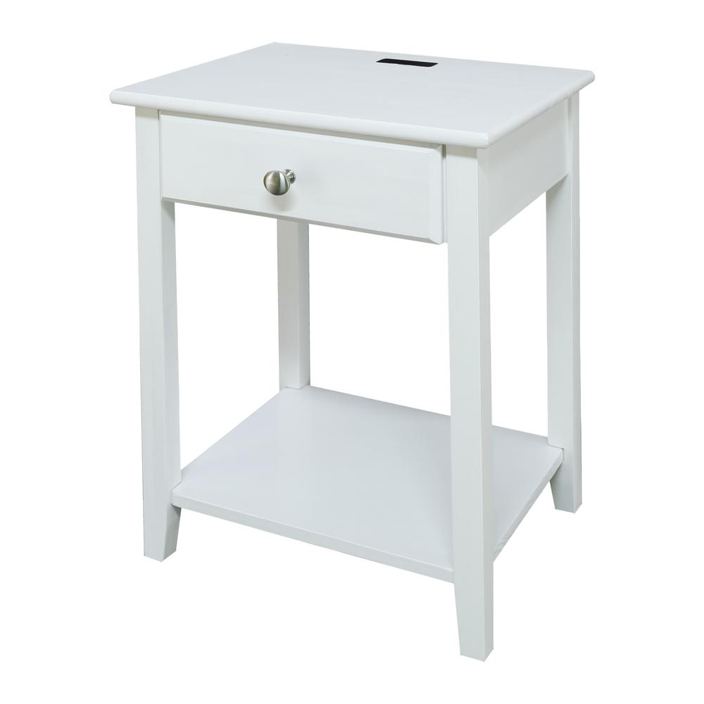 4-USB charging ports built-in for convenient device charging. Spacious open lower shelf space increases your storage capability. Convenient drawer provides space to keep your essentials. 4 durable legs provide balanced support for your belongings. Solid wood construction for increased durability and longevity. Light and easy assembly.
