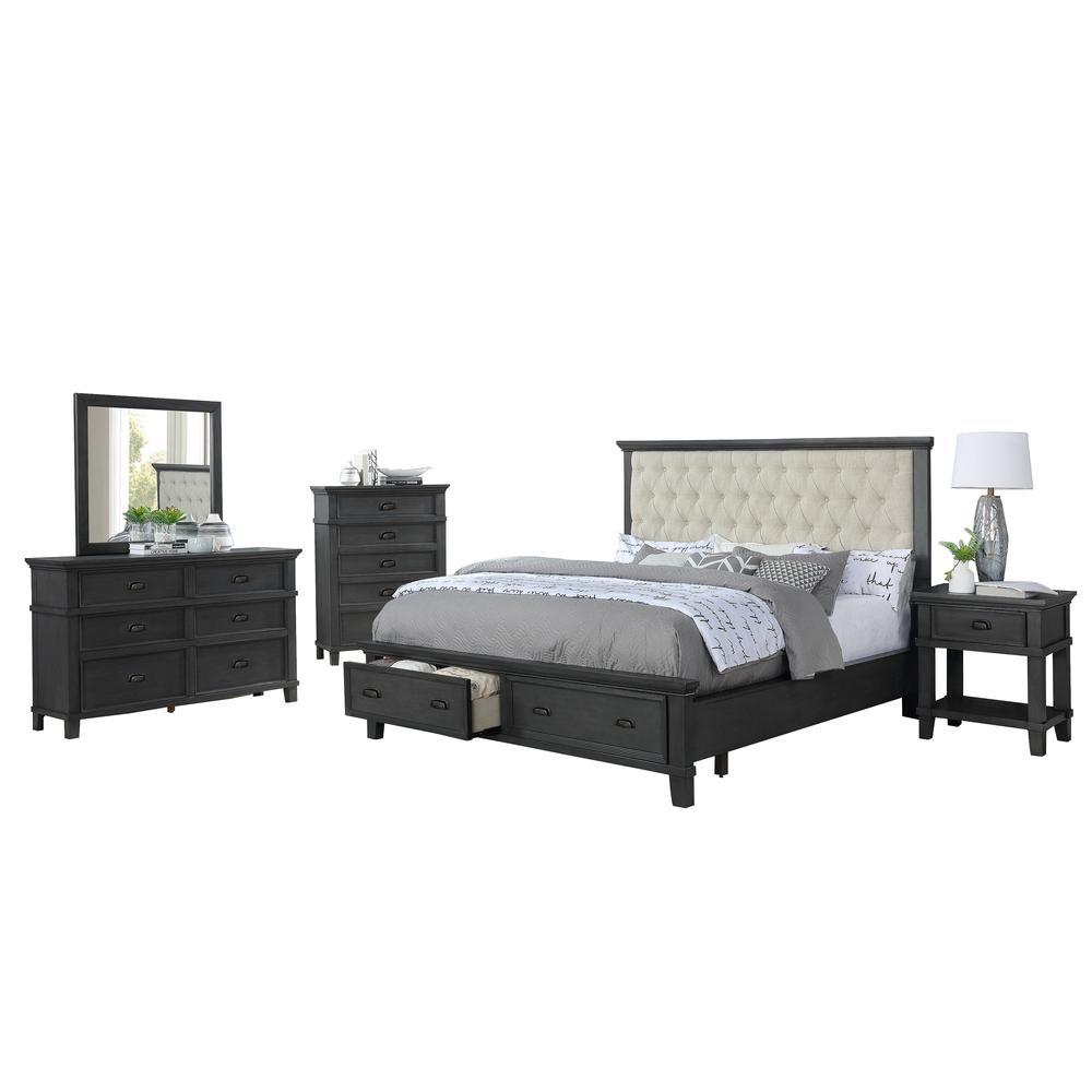 This Sandy 5 Piece Bedroom Set from Best Quality Furniture features eastern king bed, dresser, mirror, night stand and chest, with all in cappuccino color. The bed has headboard in tufted linen, and 2 drawers storage on the footboard for your convenient storage. This is a platform bed, which means you don’t need a boxspring. Other collections of Sandy Bedroom Sets are also available to choose. Bed dimension: 88"L x 79"W x 59"H