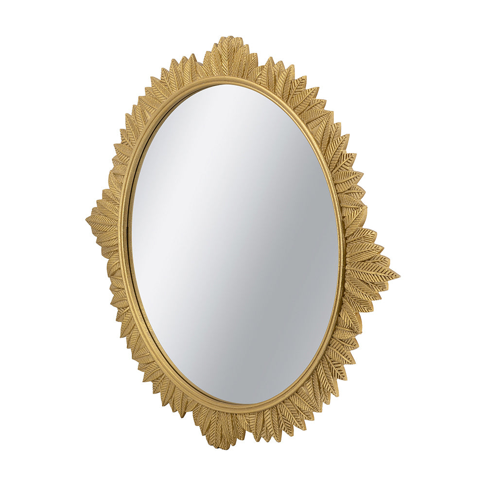 Drawing inspiration from vintage Rococo art, this mirror features a round, carved silhouette finished in soft gold to complete the ornate look. Perfectly sized to make a statement in any living room, hallway, or bedroom, it will infuse your decor with a burst of neoclassical charm.