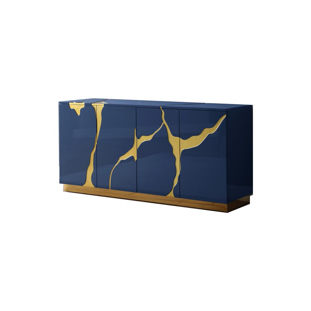 Best Master Furniture Domitianus Wood Sideboard with Gold Accents in Navy