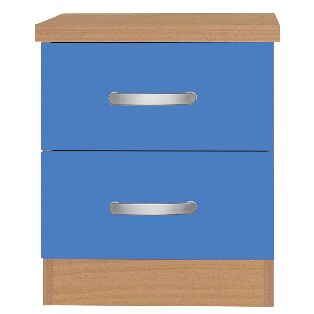 Contemporary style nightstand crafted from laminated engineered wood in Blue color finish. Two standard drawers offering plenty of storage space to help keep your room organized. Each drawer has euro-glide metal tracks with safety stop and support for a sturdy long lasting nightstand Silver color plastic bar handles will match any decor in your bedroom or guest room. Overall Dimension: 16"D x 17"W x 20"H. Slim bedside table, easy to fit into small space. Assembly required by adult. Hardware and assembly instructions included in package. Product Dimensions: 16"D x 17"W x 20"H Number of Drawers: 2 Assembly Required: Yes
