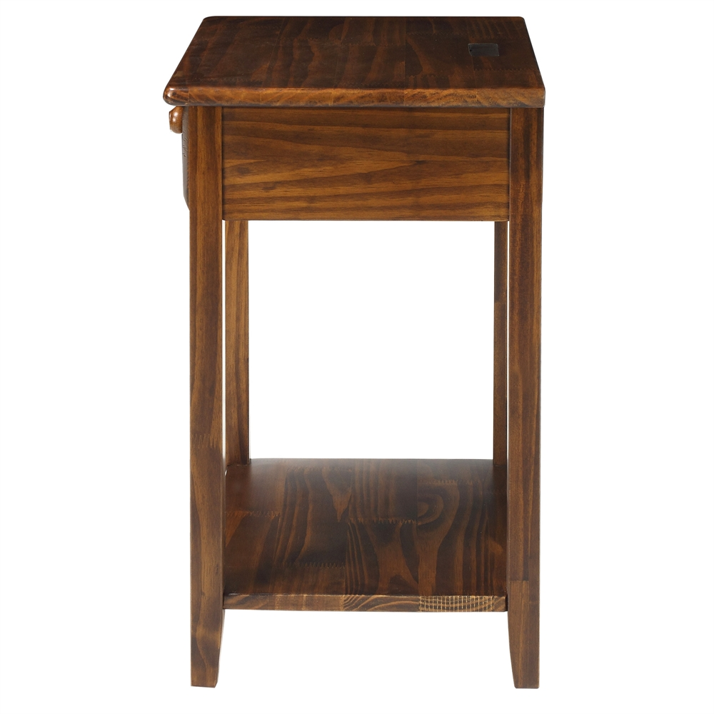 The solid wood night stand with warm brown color bring cozy appeals to your bedroom or living room. The nightstand features a unique 4-ports USB Charging Station that allows easy access to powering up cell phones, digital cameras, personal media players, and more at night. Solid wood construction ensures years of lasting beauty and structural integrity. This design will accentuate any style of home décor from traditional to modern and everything in between. One open shelf