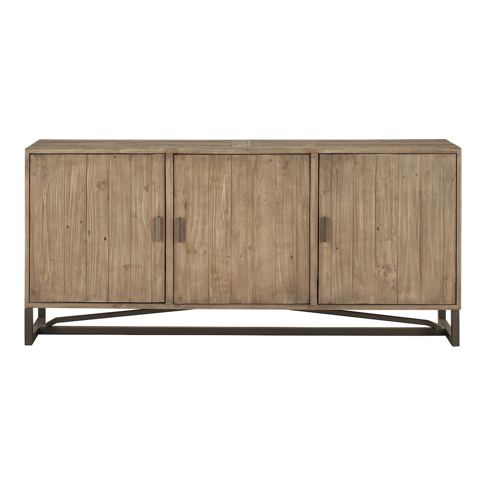 The Sierra sideboard is a stunning testament to the beauty of reclaimed pine and the art of sustainable design. Showcasing the natural wood grain and distinctive knot patterns inherent to the material, this sideboard offers functional storage with six generously-sized shelves. Elevated by a solid metal base, this piece embraces a transitional design that seamlessly unites the warmth of rustic aesthetics with the clean lines of contemporary style.