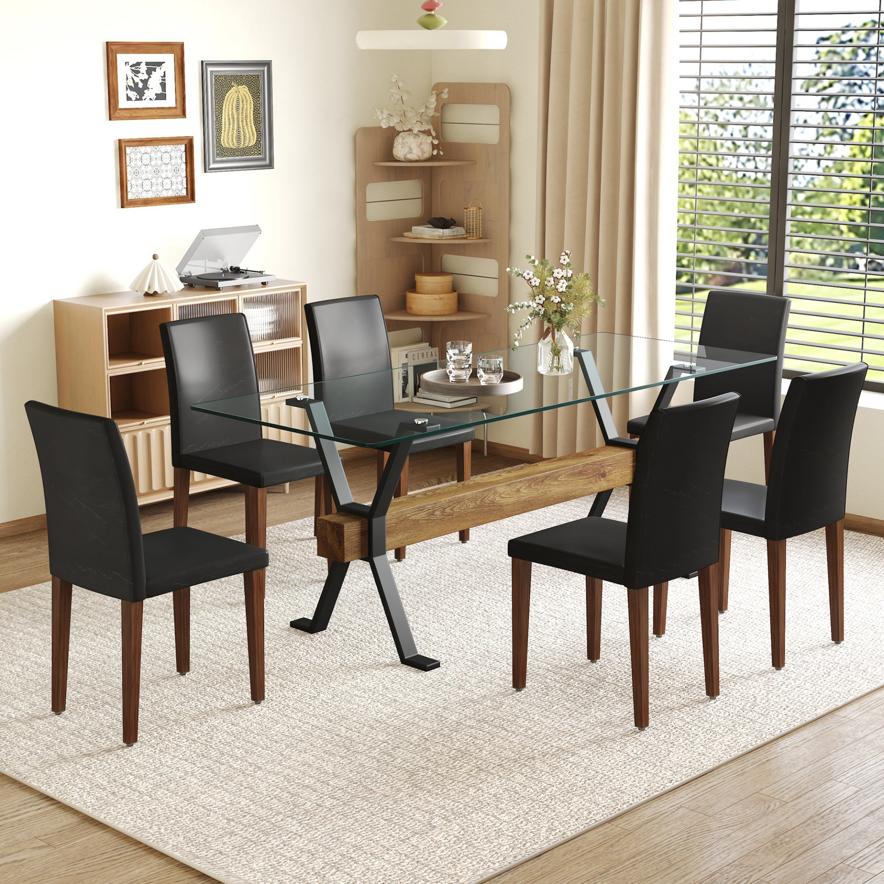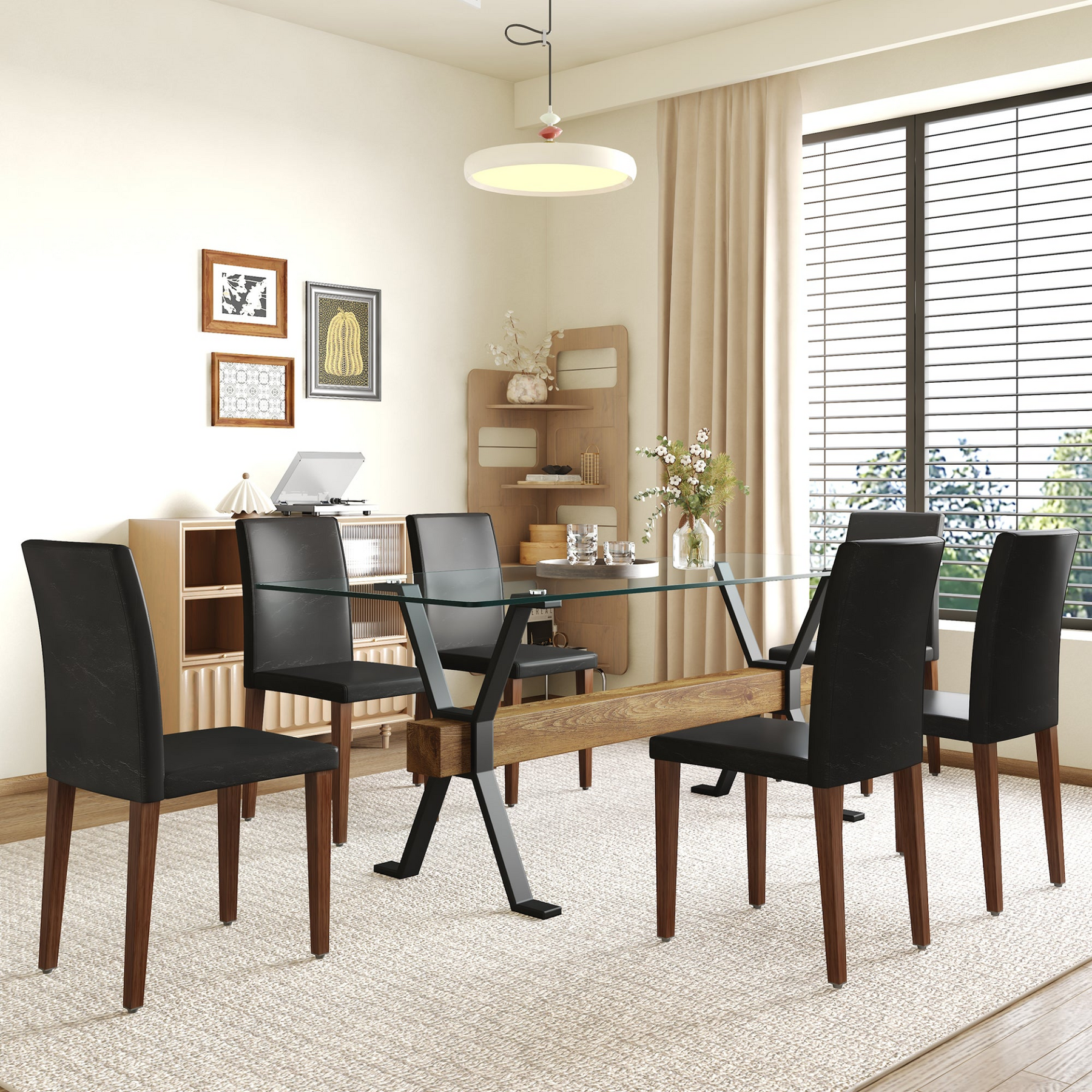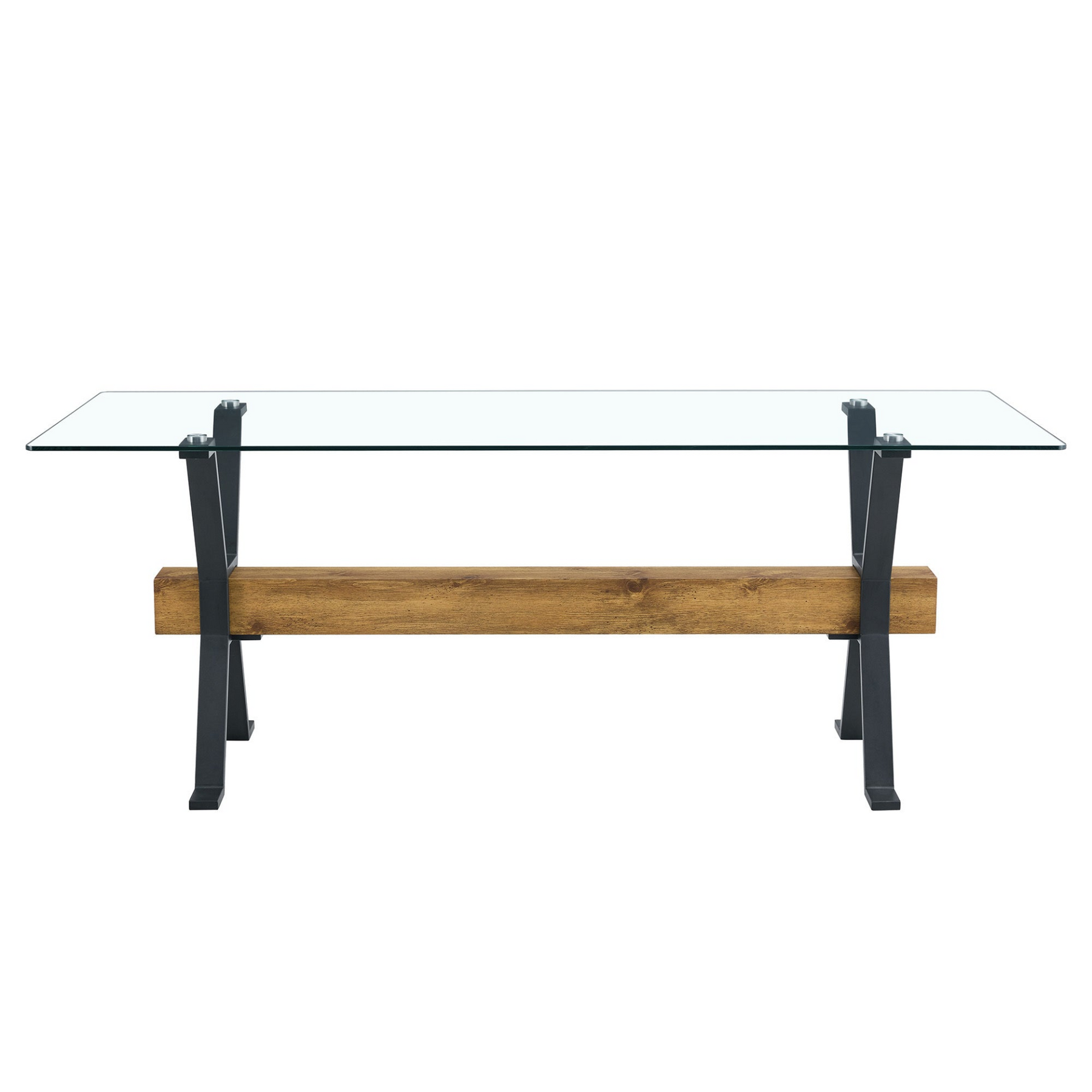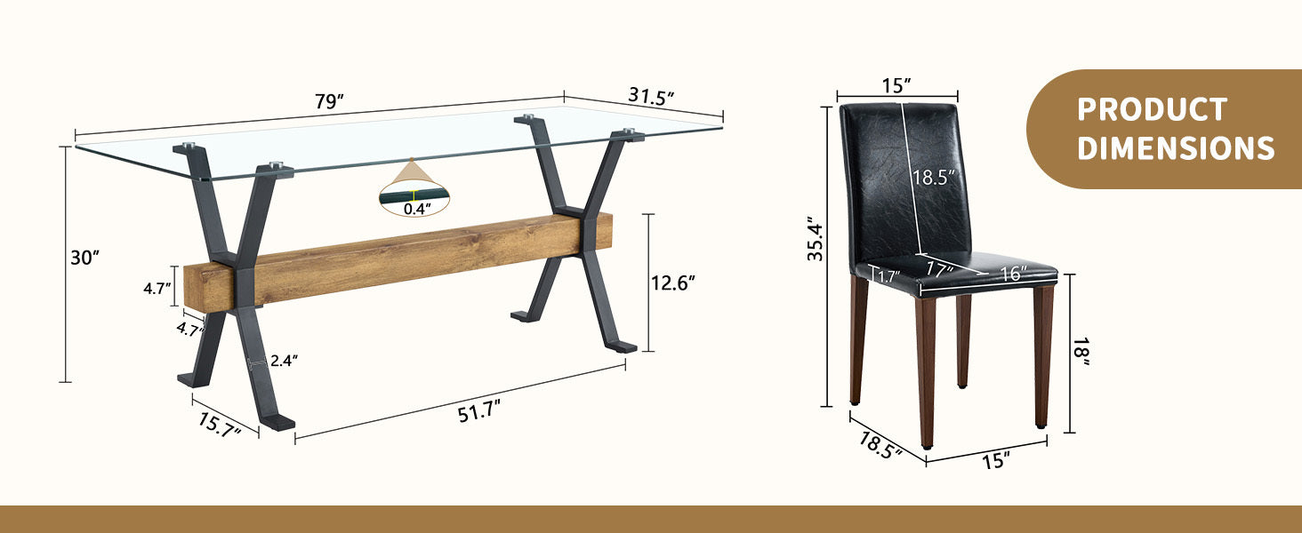 - X-Shaped Black Metal Legs: Two X-shaped metal legs with an MDF crossbeam in the middle, covered with wood grain stickers, adding stable support.Anti-Slip Feet Protection: The legs are equipped with anti-slip feet, protecting the floor while ensuring the stability of the dining table.
