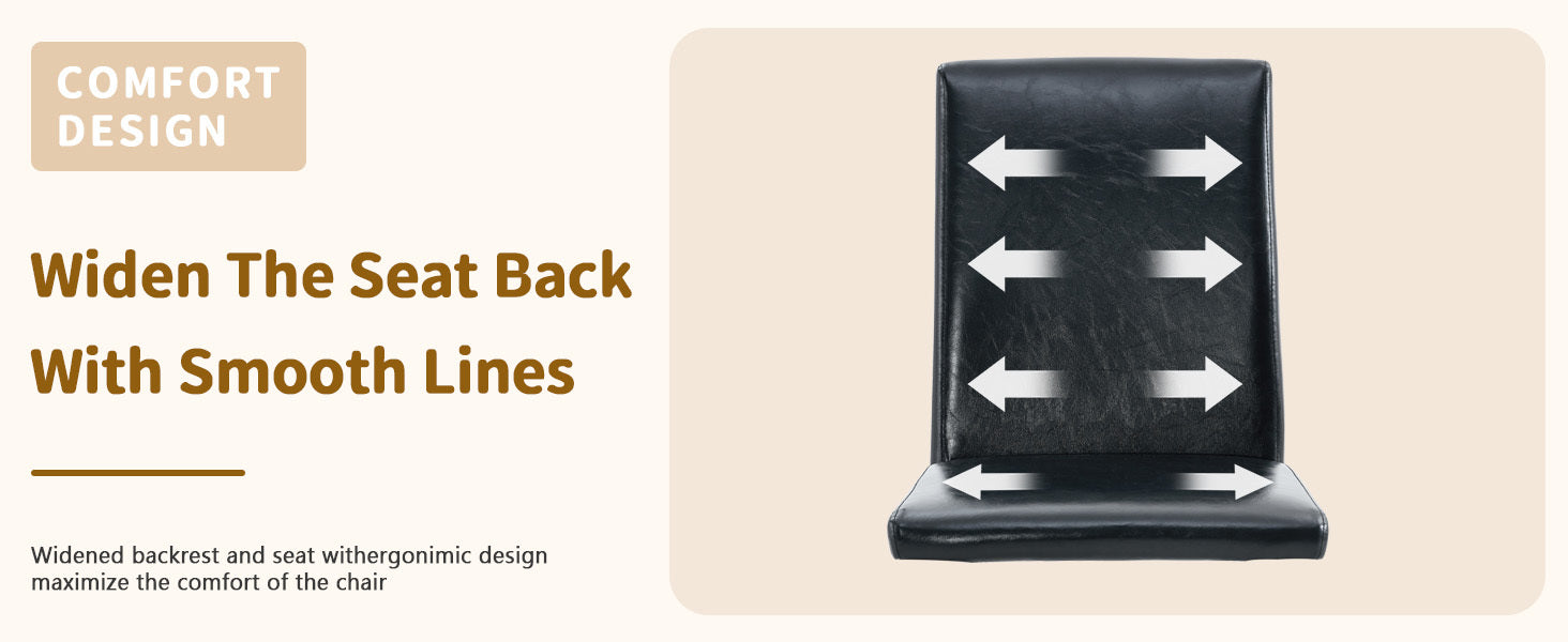 - PU leather feel: The seat cushion is made of black PU material, with a delicate and glossy appearance, possessing the high-end texture of leather, which can add elegance and fashion to the home environment.The interior is filled with high-quality sponge, which is soft and elastic.