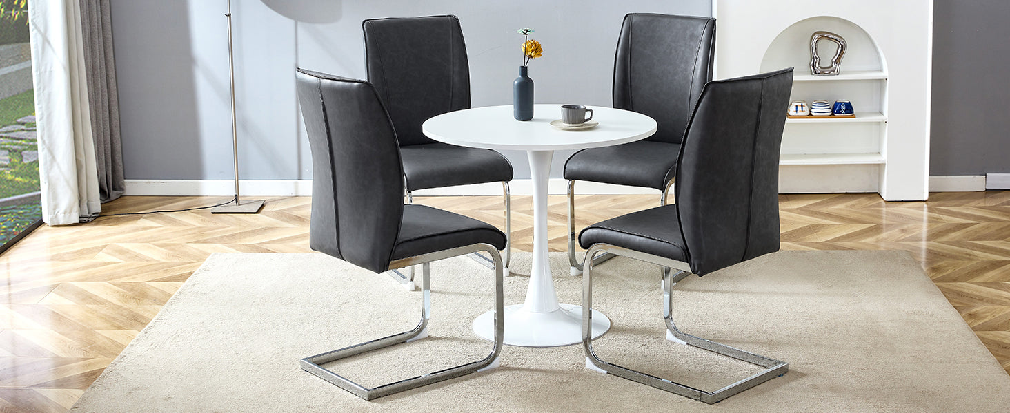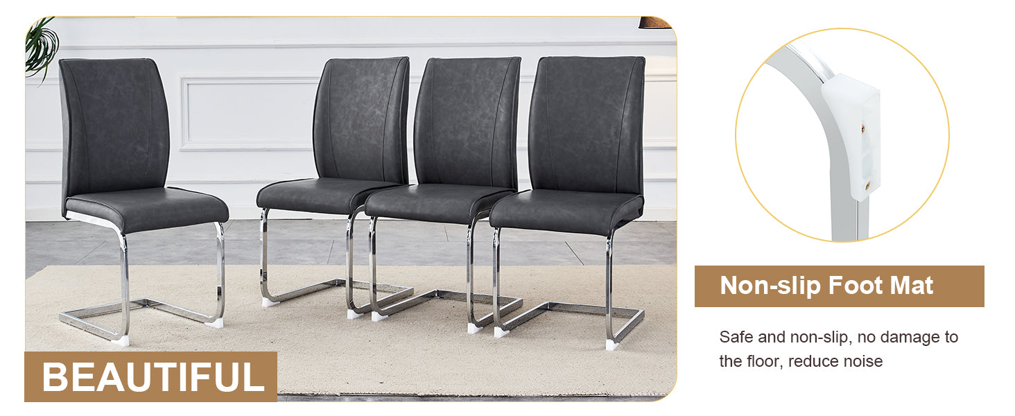 - Luxury Simple Design: This dark gray dining chair features an arched design with smooth lines and a unique shape, adding a touch of fashion to your dining area.Arched Metal Silver Leg Design: The unique arched metal silver legs not only provide stable support but also add a modern and industrial style, making the dining chair a fashionable focal point in the dining area.