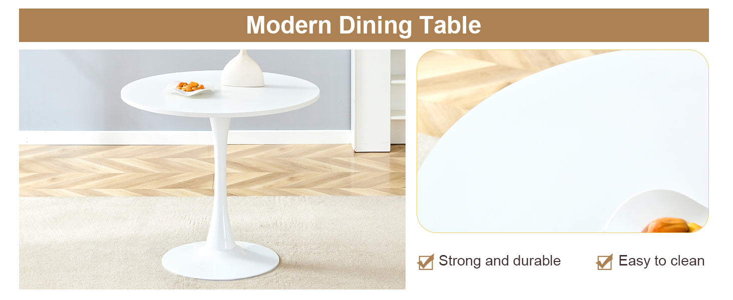 - Natural and warm color tone: The white desktop creates a natural and warm atmosphere, perfectly integrating various home decoration styles.Circular desktop design: Circular desktop design helps to bring people closer together, promote communication between family and friends, and enjoy more intimate dining time.