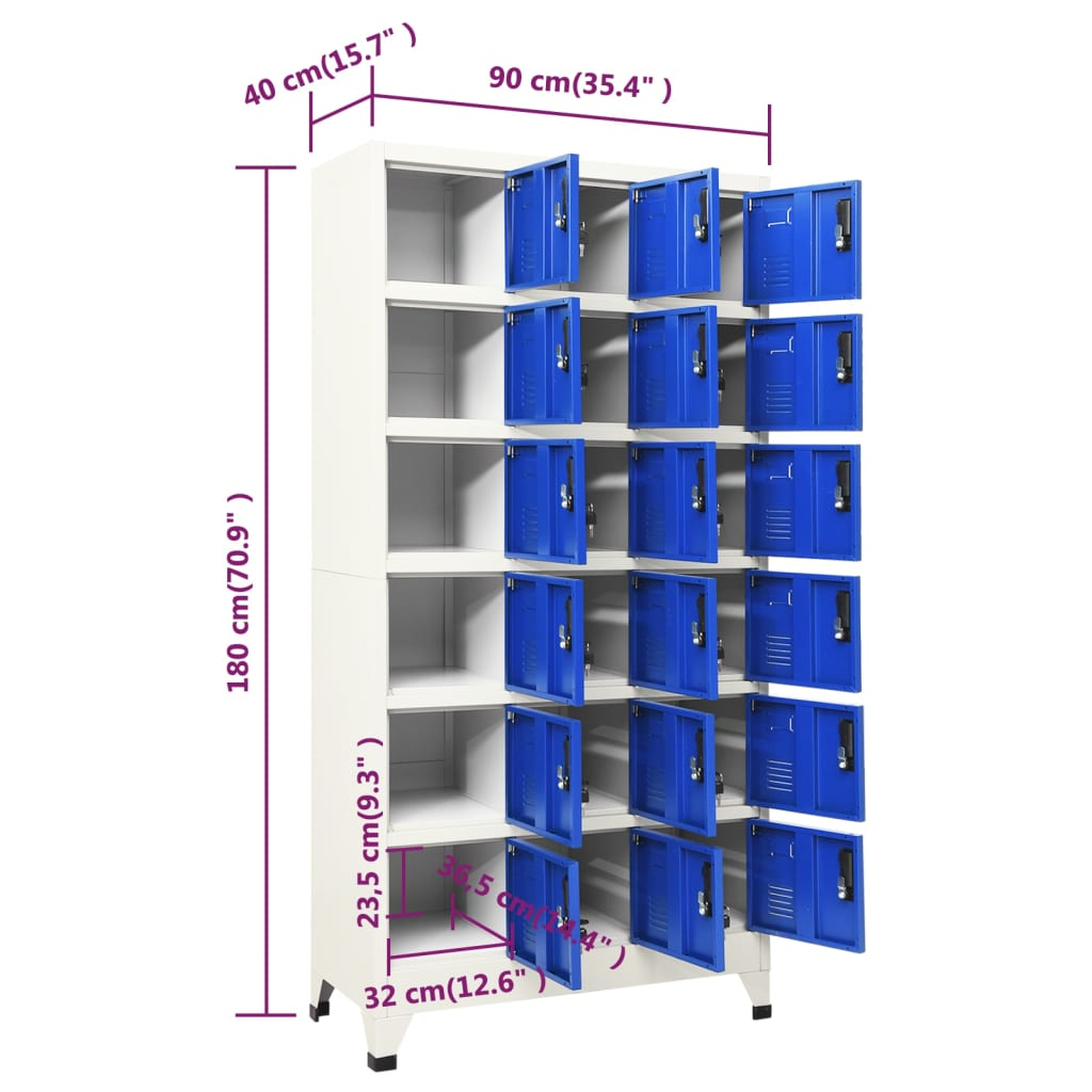 - Ample Storage: This cabinet features 18 compartment doors for plenty of space to store personal items, office supplies, or clothes. It's perfect for schools, offices, or home use where secure storage really matters.