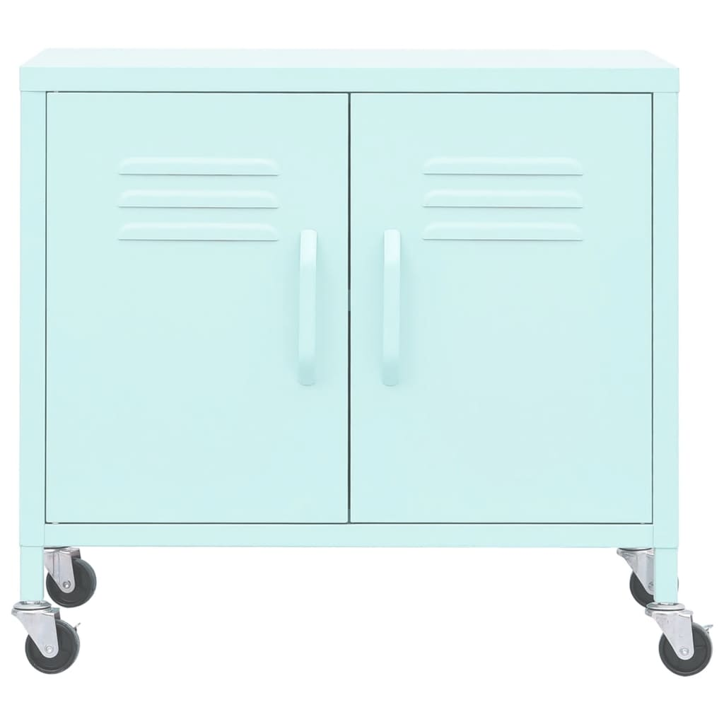 This Mint Steel Storage Cabinet is a stylish and practical choice for organizing and displaying your stuff, making it a perfect fit for any modern space. With its cool industrial look, it seamlessly combines style and practicality, ideal for storing everything from office supplies to books in your home office, living room, or bedroom.