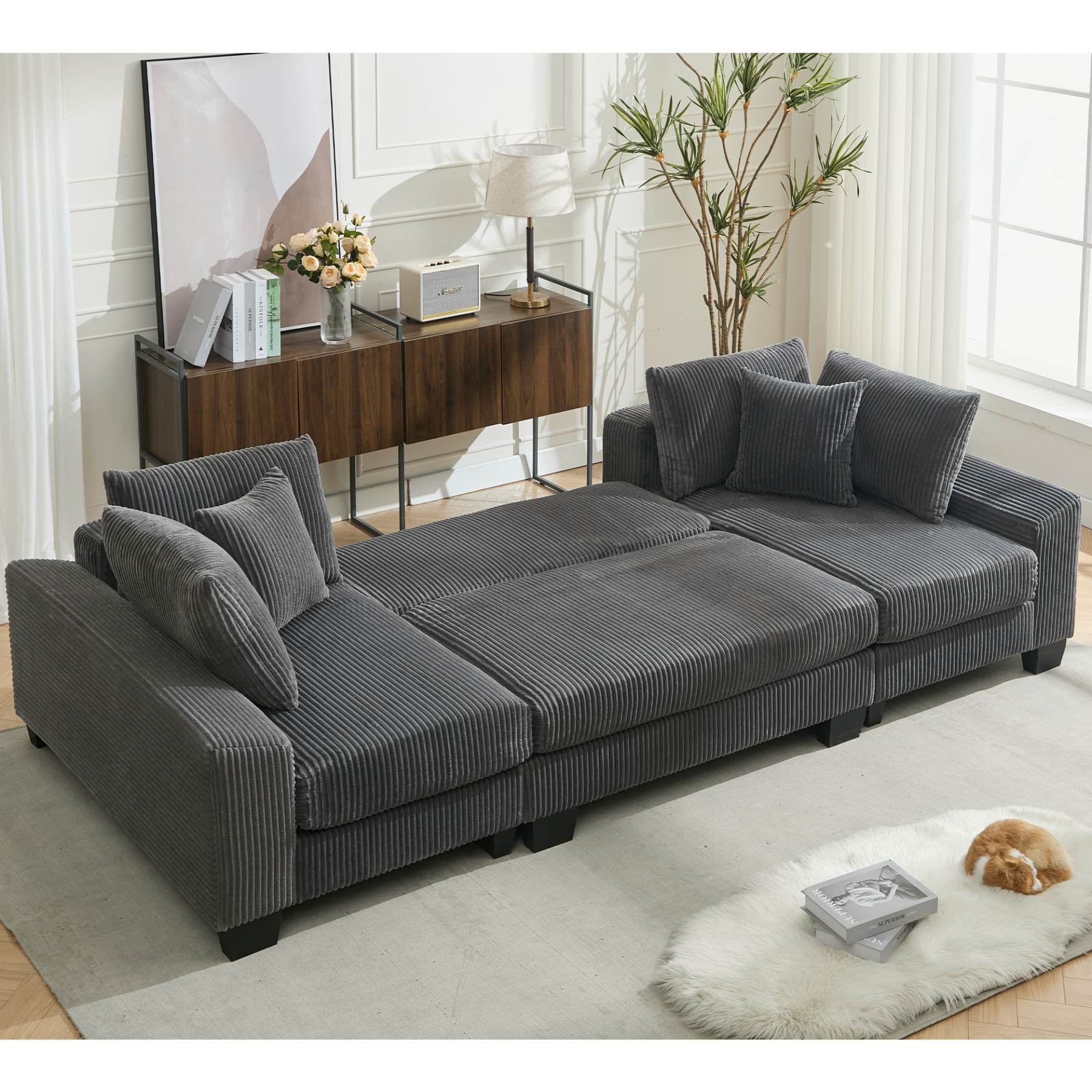 114' Sleeper Sofa,U Shaped Sofa , Pull Out Bed,Convertible Oversize 2 in 1 Sleeper Sofa, Living Room,Upholstery Sofa Bed,Adjustable Sleeper Sofa,Corduroy,Dark Gray