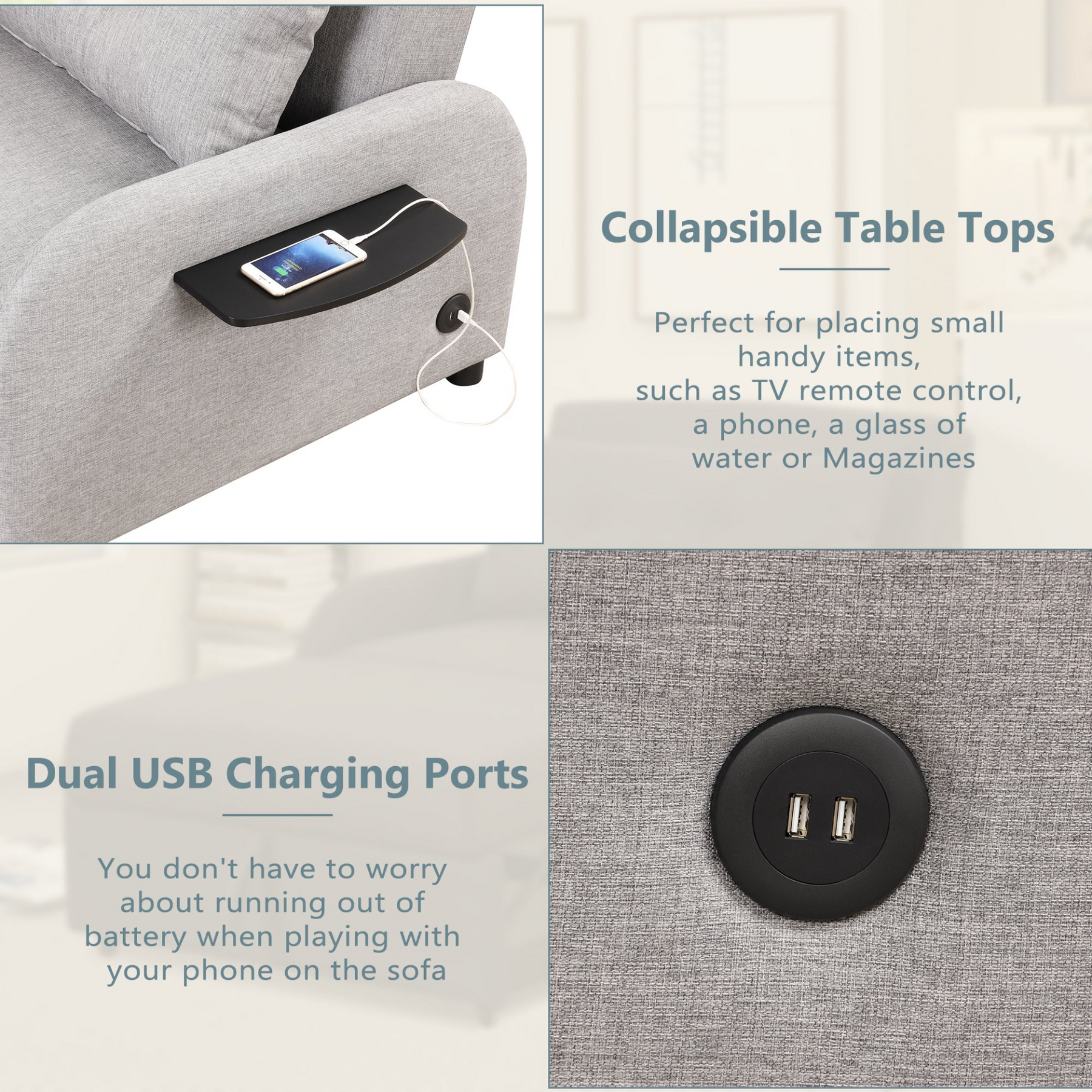 - Wing table and Usb charge - The collapsible table top is like a pair of small wings that can hold small handy items, such as a phone or a glass of water. Using every inch of space as wisely as possible. The usb charge can avoid the clutter of wires and make your room look more tidy.