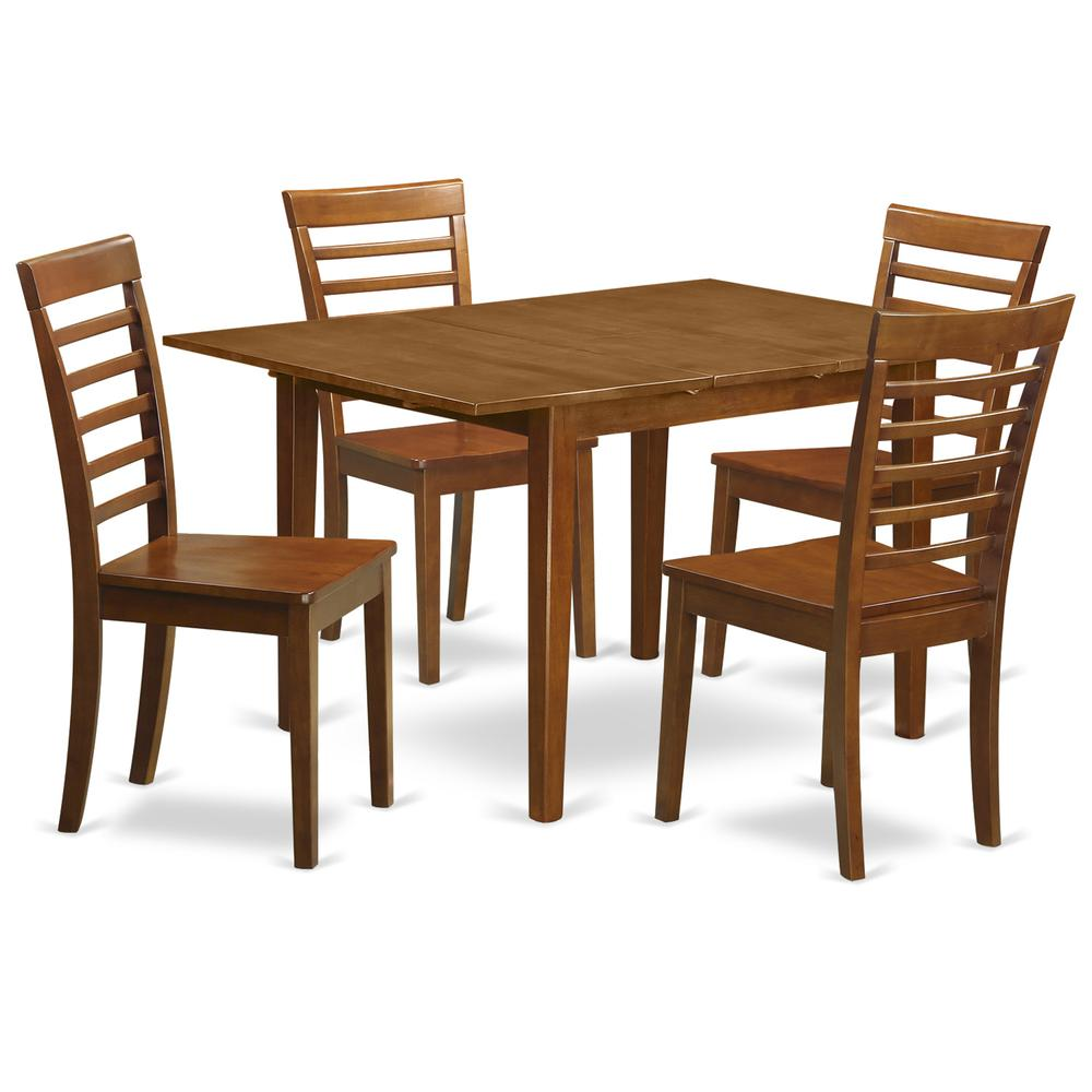 Milan 5 piece Set with Rectangular Table featured 12 in butterfly leaf and 4 wood seat chairs. Table Dimensions: Length 42 / 54; Width 36; Height 29.5. Chair Dimensions: Length 17; Width 16.5; Height 37. Premium dining room set that made of all Asian Hardwood. Completely no MDF, veneer, laminate used our goods. Kitchen tables provides 12In self storage extension leaf which can be stored right beneath table the top