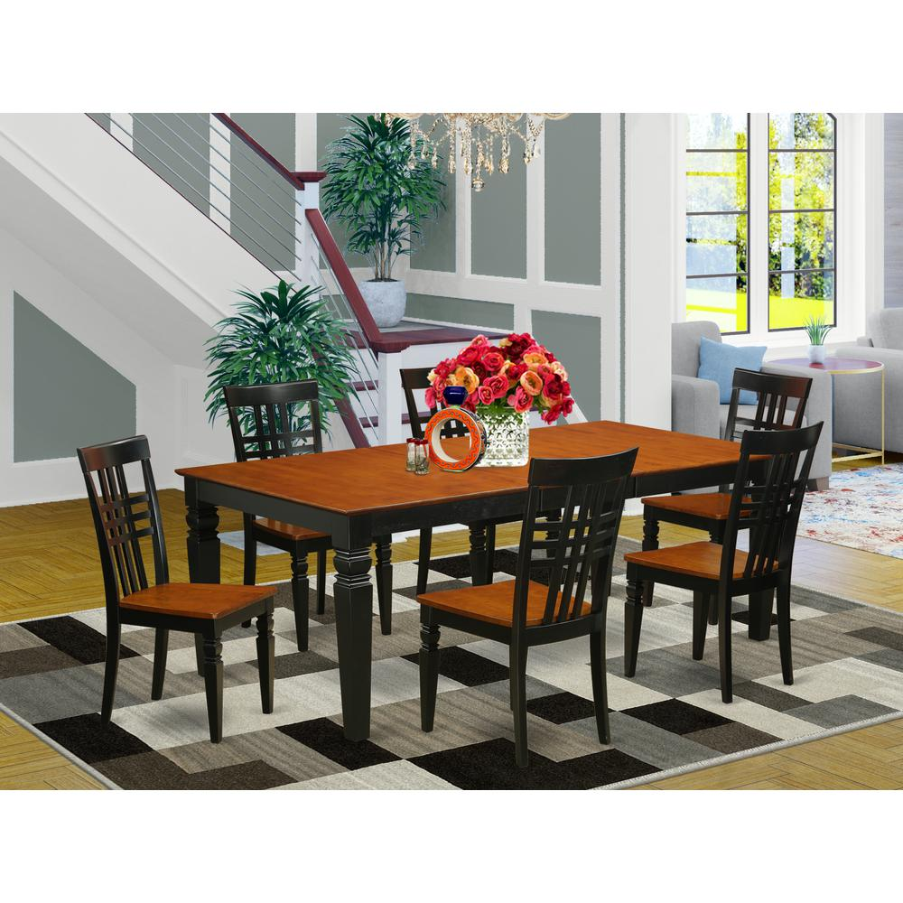This particular 7-Piece table and chairs set comes with one table and 6 dining chairs. Table Dimensions. Length 66/84; Width 42; Height 30. Chair Dimensions. Length 17. 5; Width 18. 5; Height 38. 5. Dining room table features a built-in 18 inch self