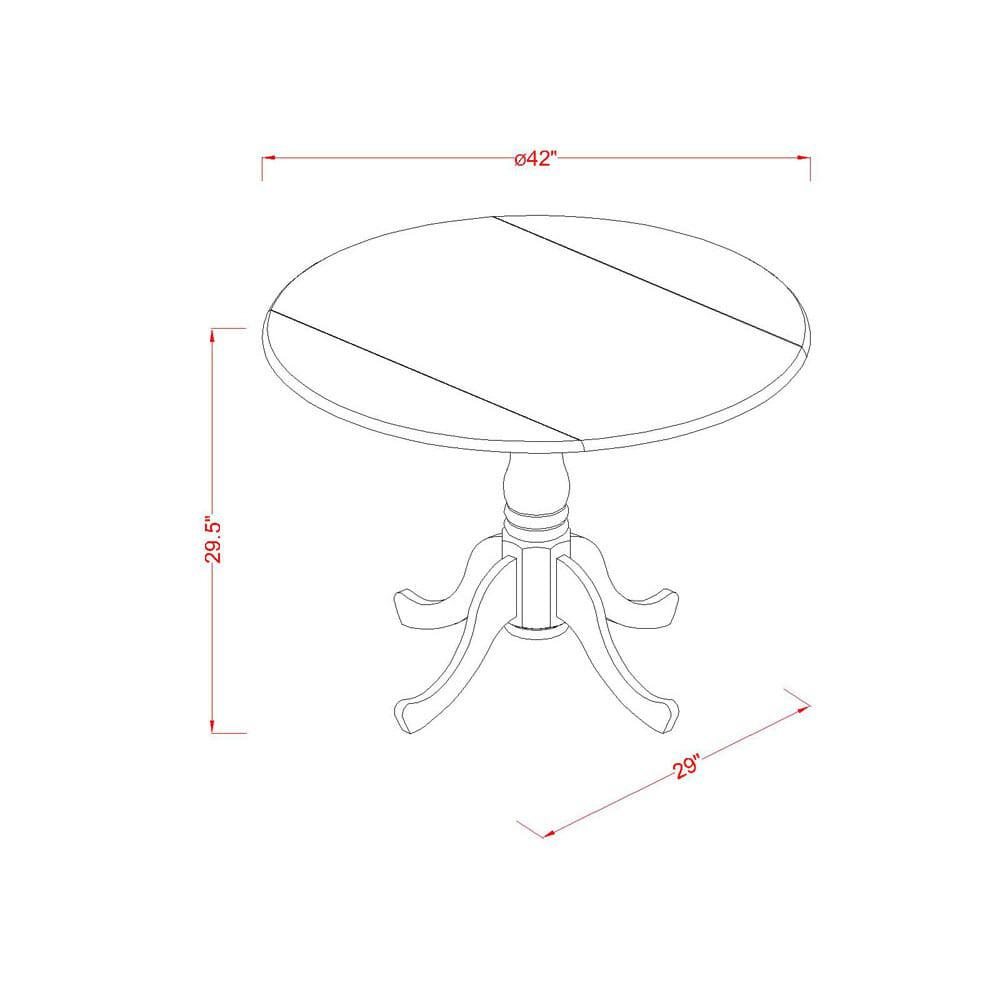 5 piece Kitchen Round Table with Drop Leaves and 4 Microfiber Seat Chairs in a Black Finish. Table Dimensions: Length 42; Width 42; Height 29. Chair Dimensions: Length 18; Width 18; Height 39. Best quality kitchen set that made out of all Asian Hardwood. Basically no MDF, veneer, laminate applied in our goods. Round kitchen table comes with two 9-Inch Drop Leaves. Perfect For small compact area