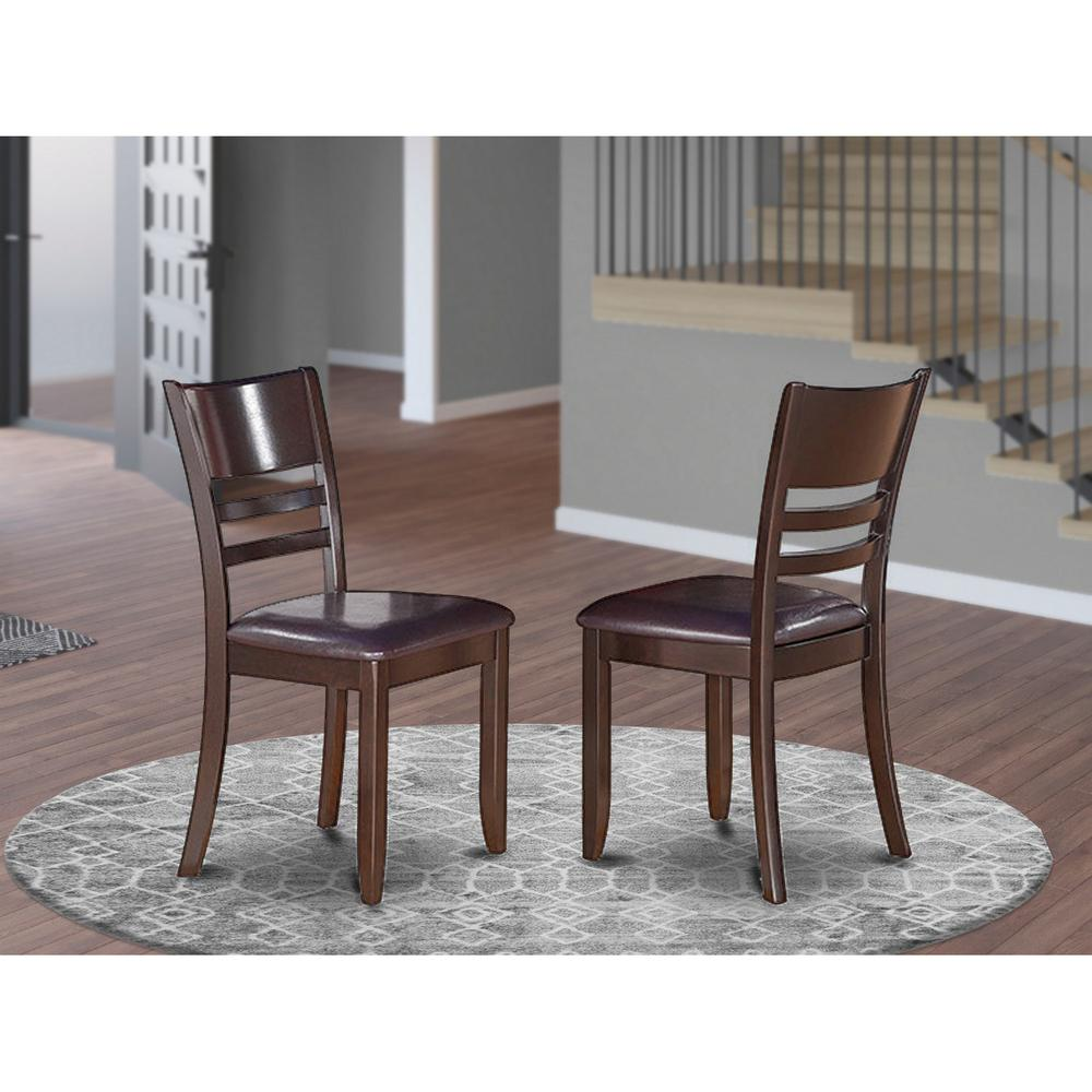 Lynfield Dining Chair with Faux Leather Upholstered Seat in Cappuccino Finish. High quality dining-room chairs made of all very solid Asian wood. No MDF, heat treated wood, particle aboard or venner used. Crafted from durable Asian solid woods. Styli