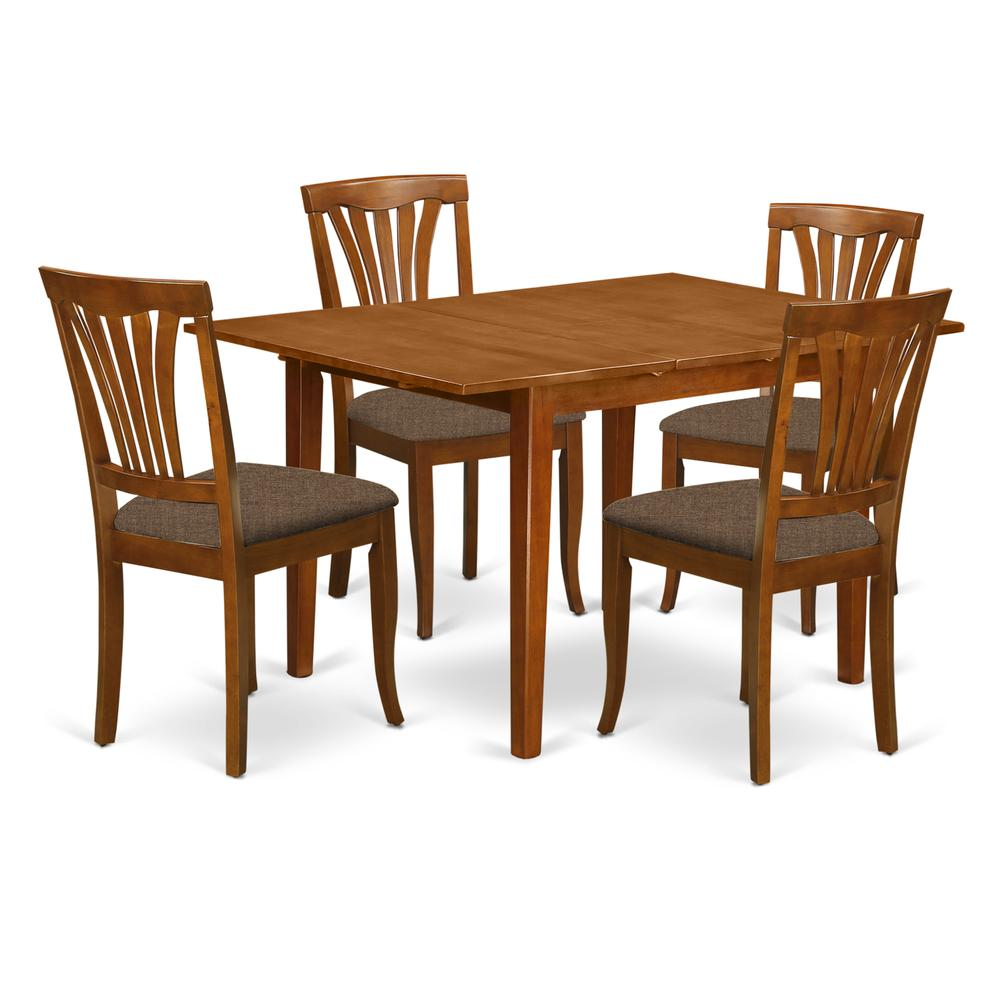 Milan 5 piece Set with Rectangular Table with 12 in butterfly leaf and 4 Cushioned seat chairs. Table Dimensions: Length 42 / 54; Width 36; Height 29.5. Chair Dimensions: Length 18; Width 18; Height 37. Brand kitchen set which constructed of all Asian Hardwood. An absense of MDF, veneer, laminate included in our products. Small dinette table offers twelve In self storing expansion leaf That Is Stored Right Beneath Table Top