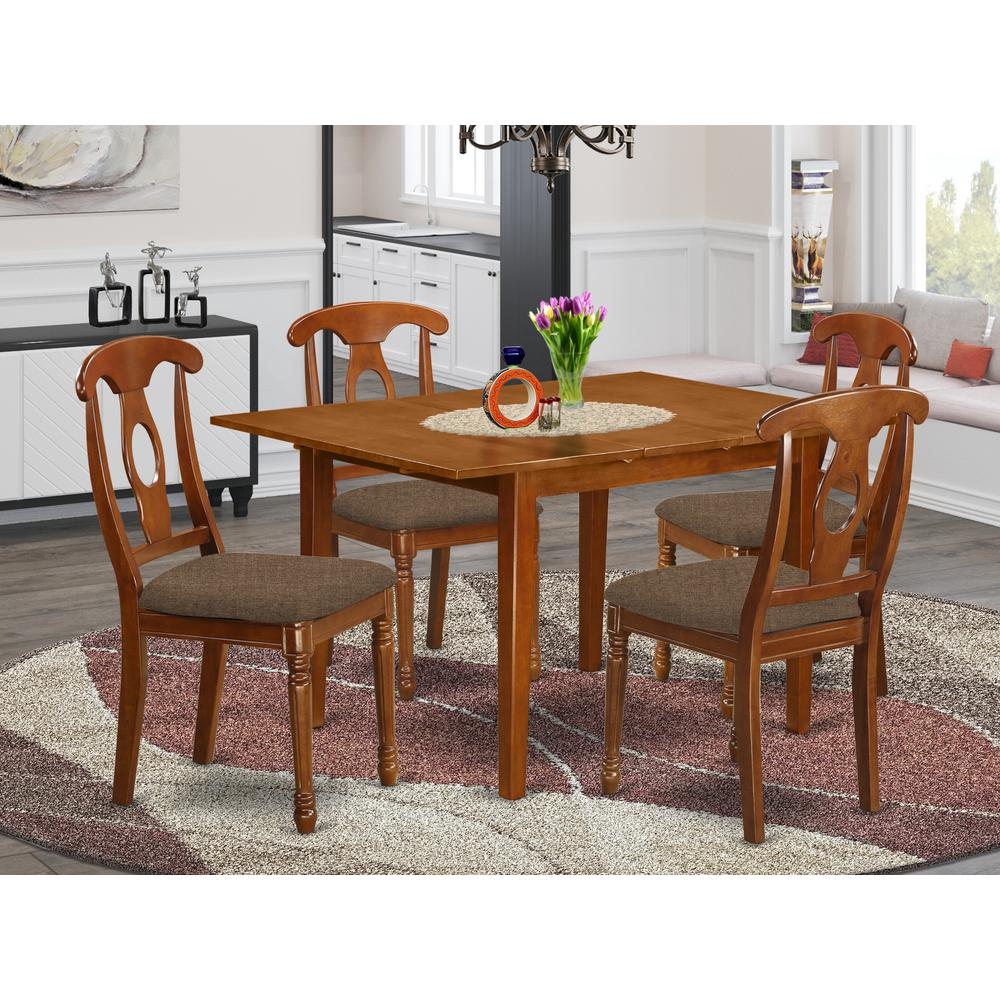 5-Piece Kitchen table set with Rectangular Dining room table featured 12 in butterfly leaf and 4 microfiber upholstered seat chairs. Table Dimensions: Length 42 / 54; Width 36; Height 29.5. Chair Dimensions: Length 18; Width 18; Height 38. High-quality kitchen set that made out of 100% Asian Hardwood. Completely no MDF, veneer, laminate use within our goods. Kitchen tables provides 12In self storage extension leaf which can be stored right beneath table the top