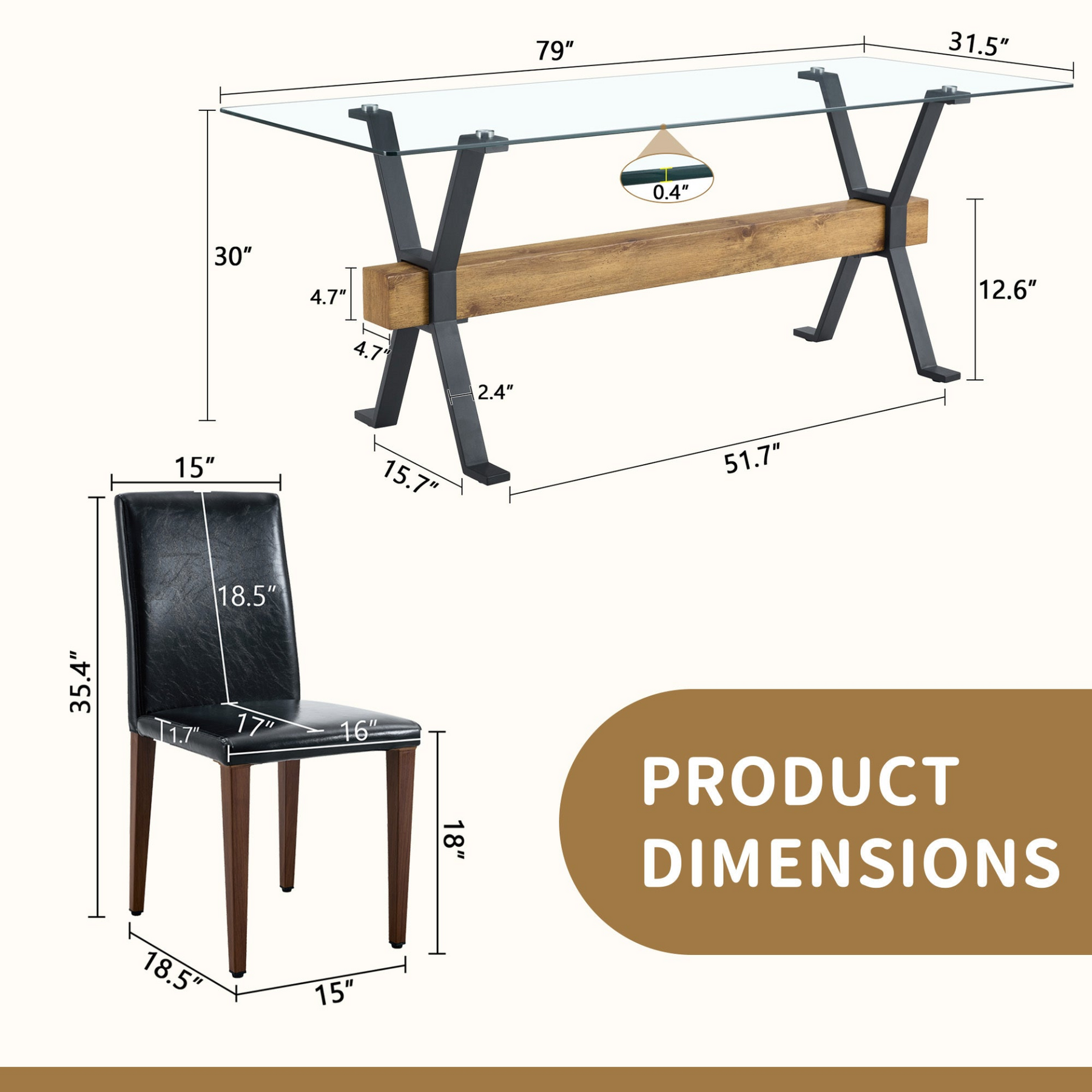 - X-Shaped Black Metal Legs: Two X-shaped metal legs with an MDF crossbeam in the middle, covered with wood grain stickers, adding stable support.Anti-Slip Feet Protection: The legs are equipped with anti-slip feet, protecting the floor while ensuring the stability of the dining table.