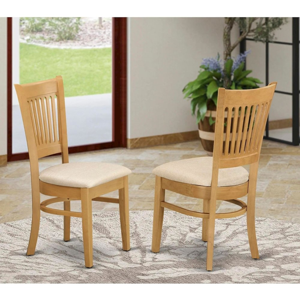 VAC-OAK-C Vancouver Linen Fabric Seat Dining Chairs - Oak Finish set of 2