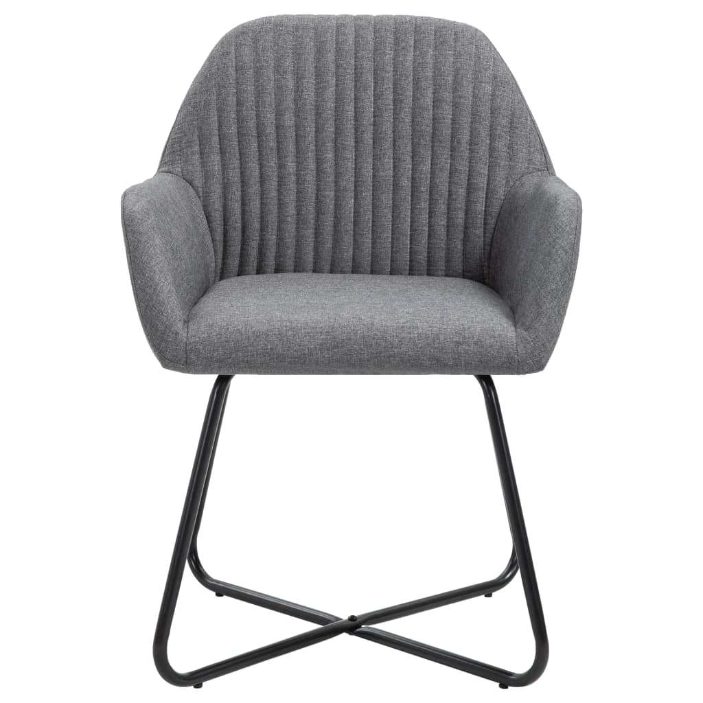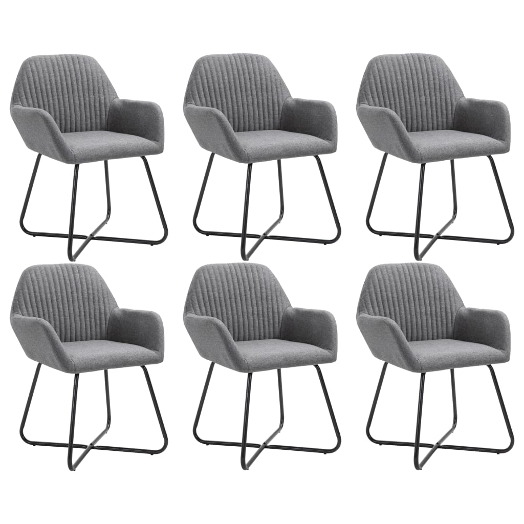 This set of six modern dining chairs is perfect for enhancing your home dining experience. Each chair features dark gray fabric and strong black powder-coated steel legs for a stylish touch in your living or dining room.