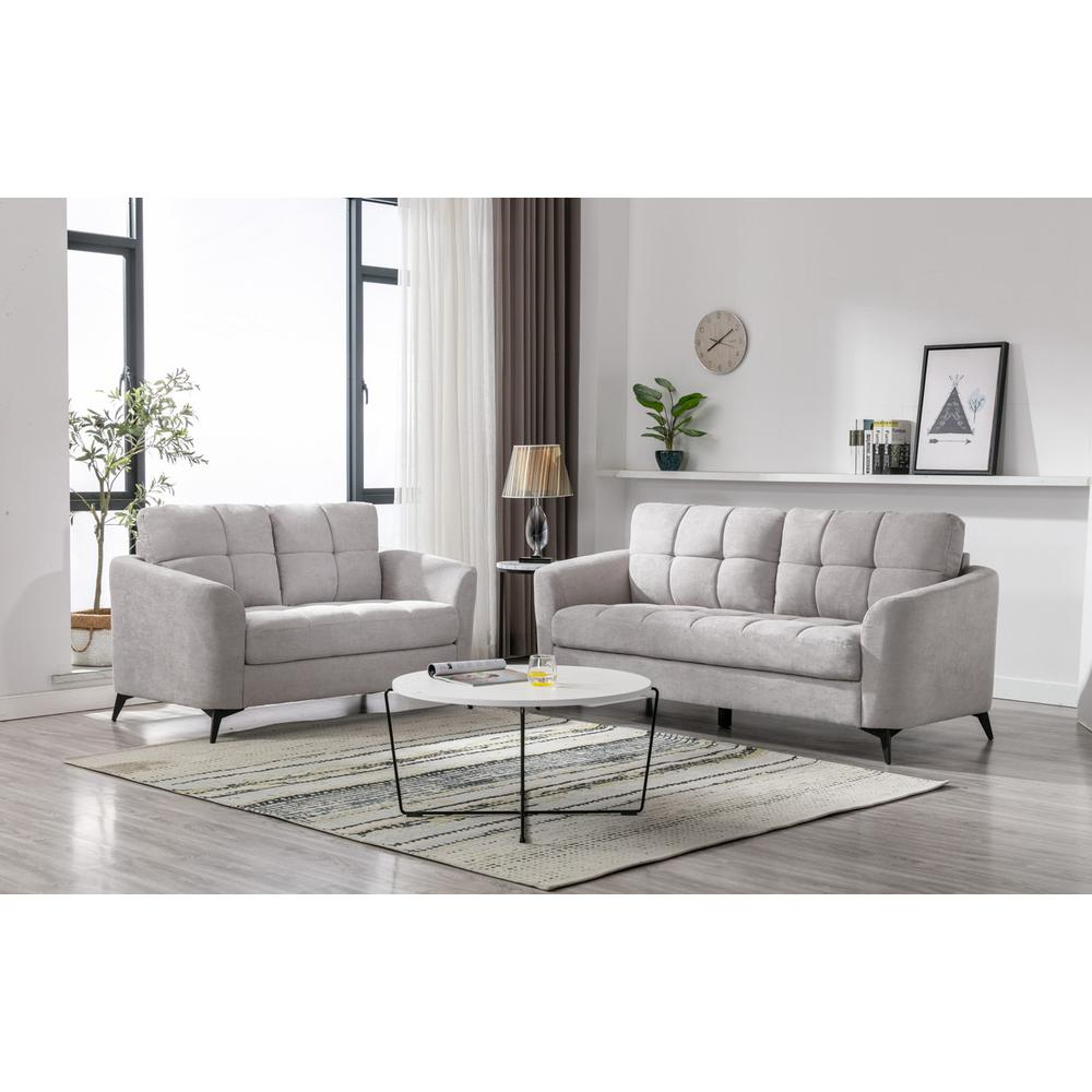 Includes 1 Sofa, 1 Loveseat Tufted Cushion Pocket Coil Seating Sofa Measurement: 79”x33”x35”H, Loveseat Measurement: 60”x33”x35”H 19.5" Seat Height 21.5" Seat Depth 22" Arm Height 18" Seat Back Height 5.5" Leg Height Black Metal Legs