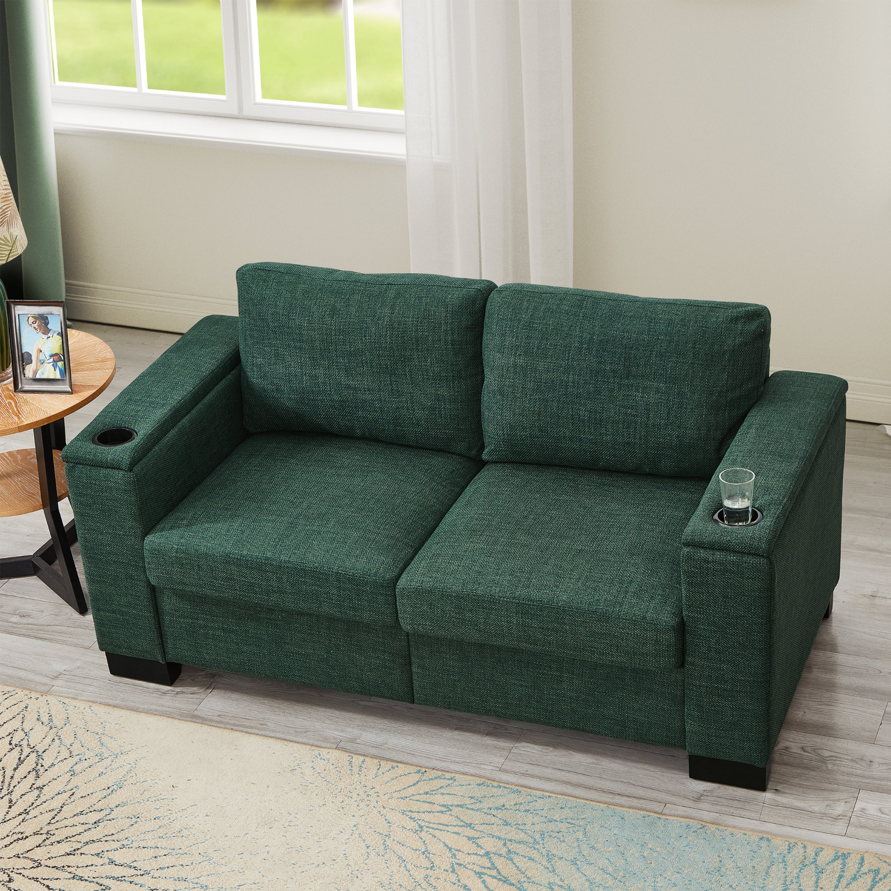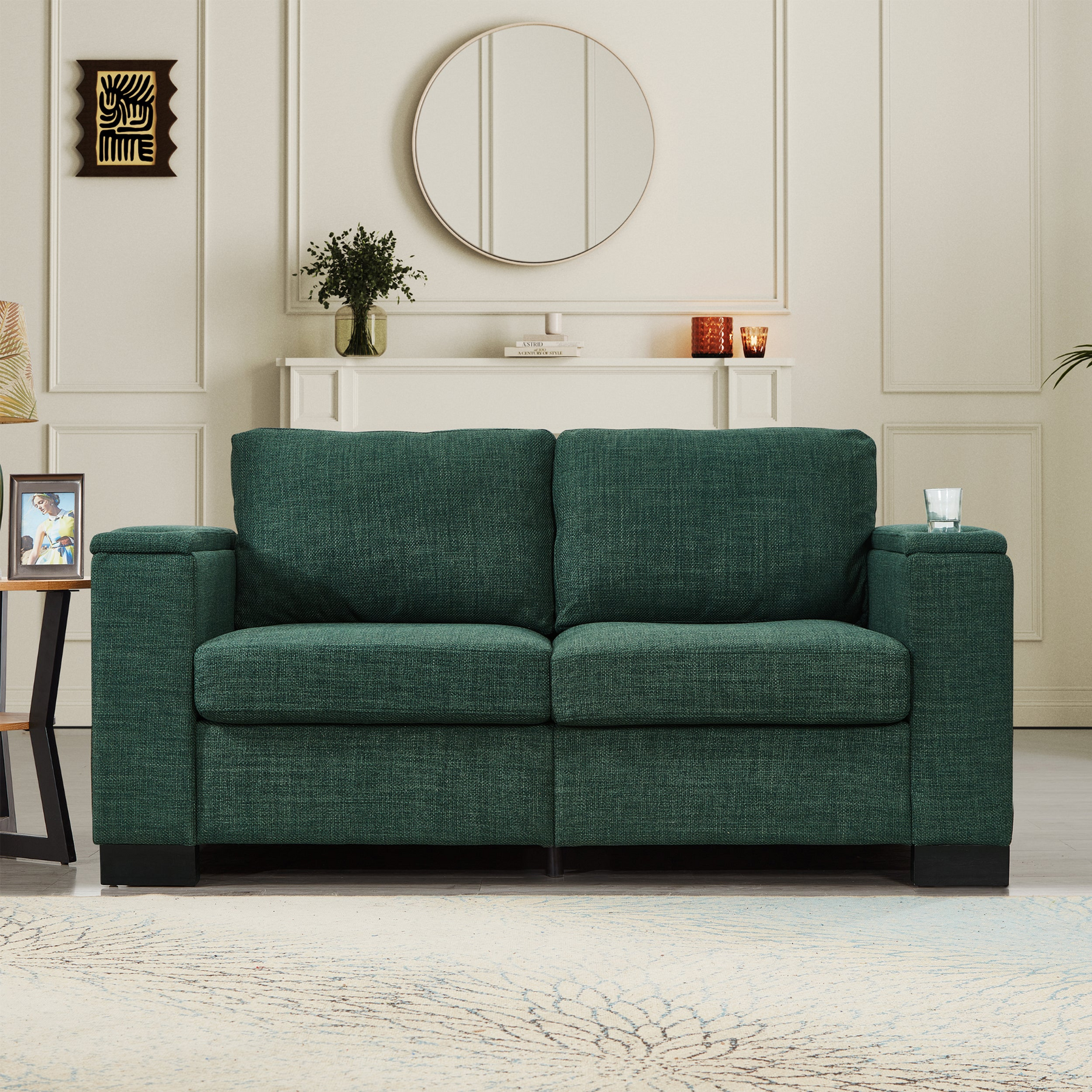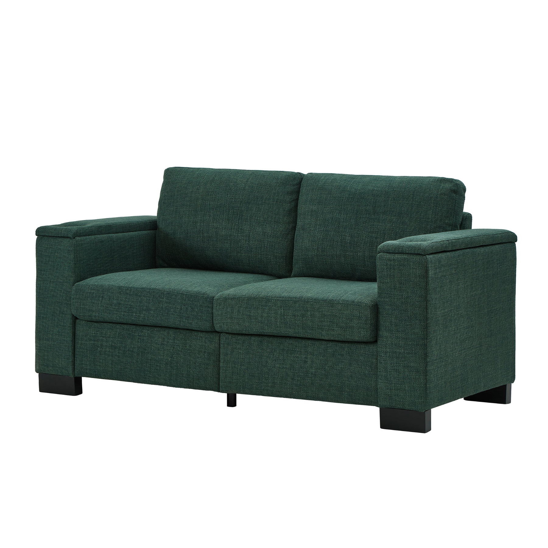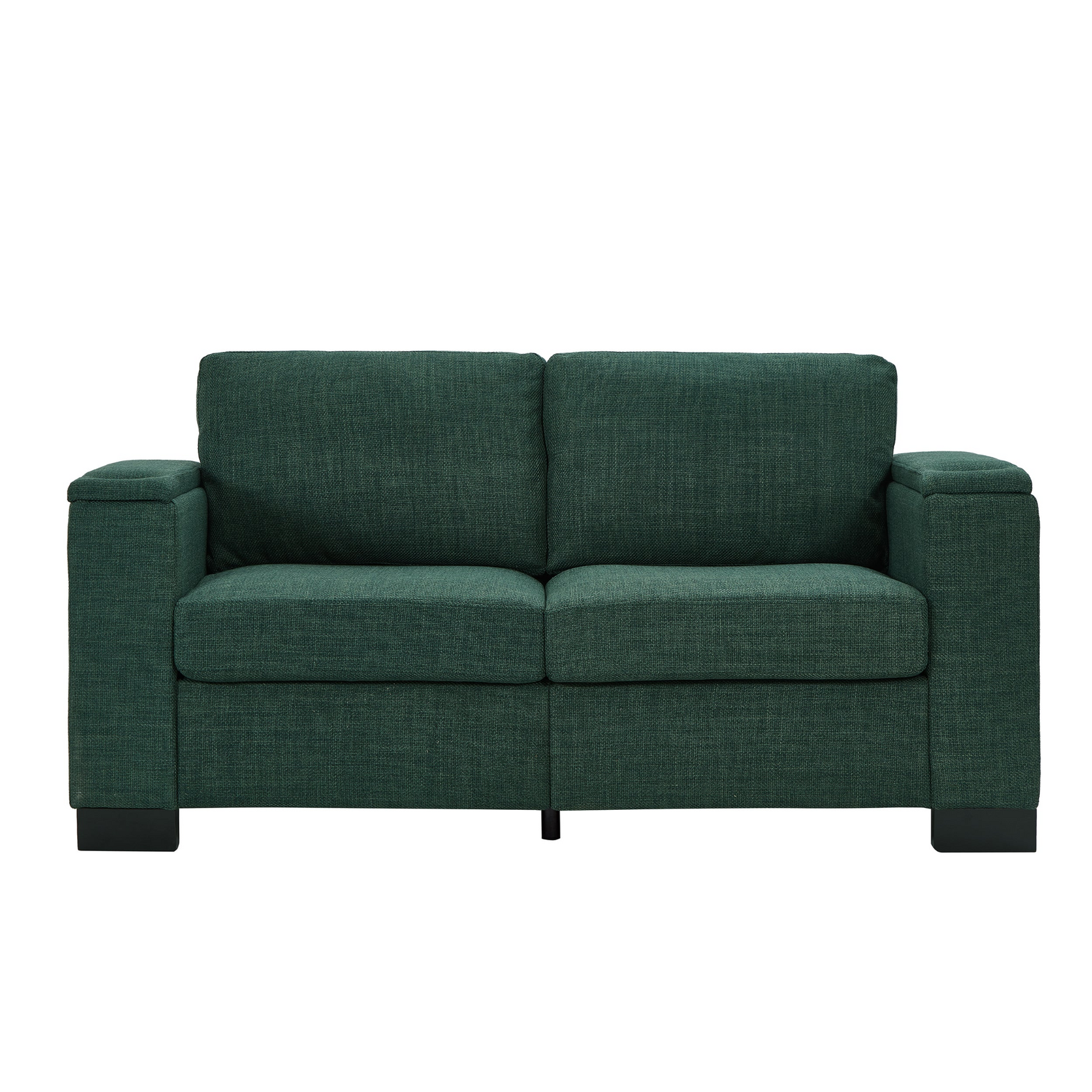 67.7' Modern Style Living Room Loveseat Fabric Couch,Square Arm Sofa with Cup Holder,Storage Sofa,Upholstered Polyester Green.