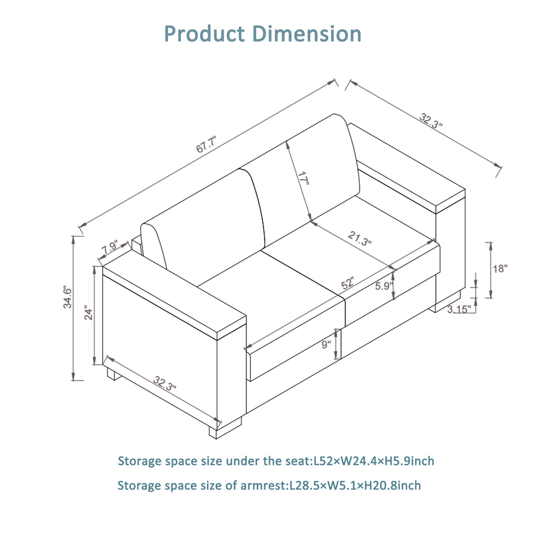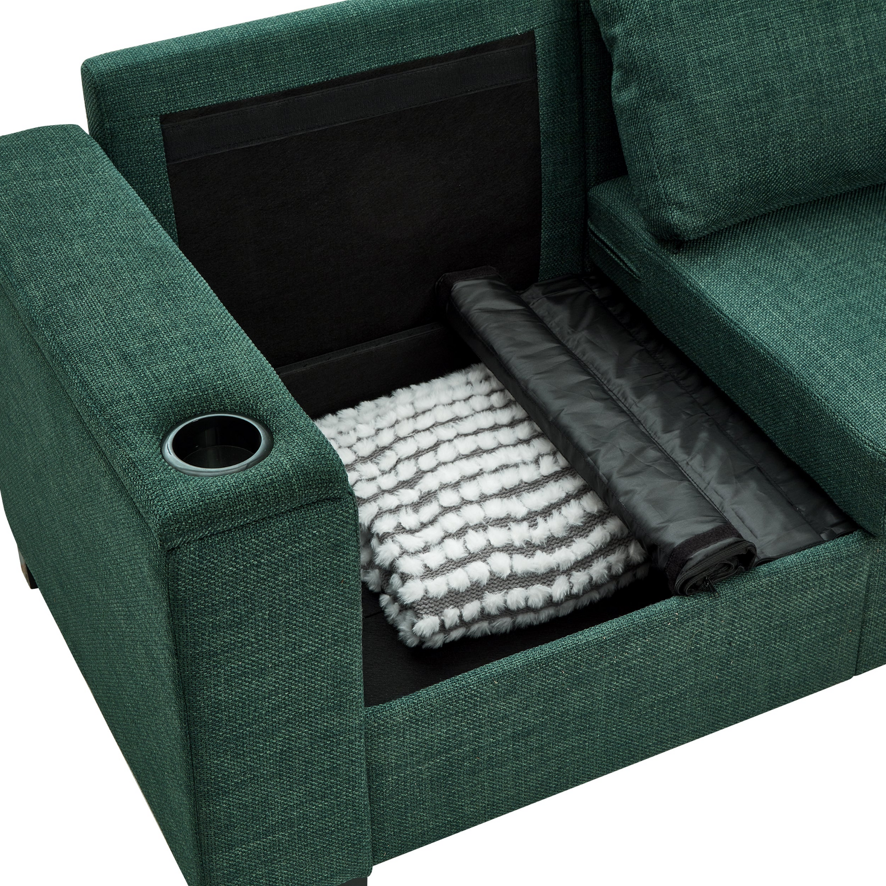 • Multi function: The sofa's wide armrest design is equipped with a cup holder, and there is an additional storage space in the arm, which can store small items such as books and pillows. Under the seat cushion also has large storage space, making the sofa highly practical.