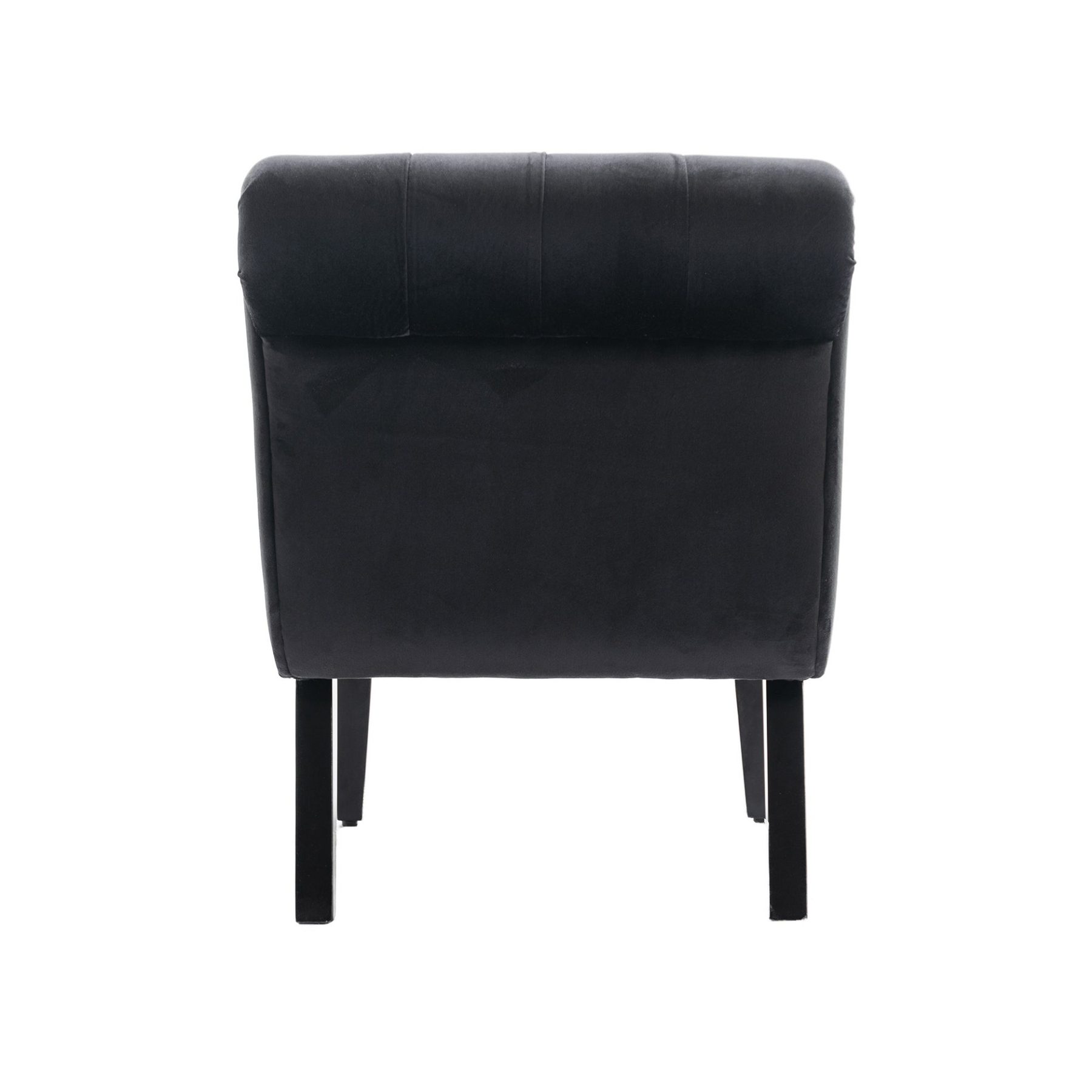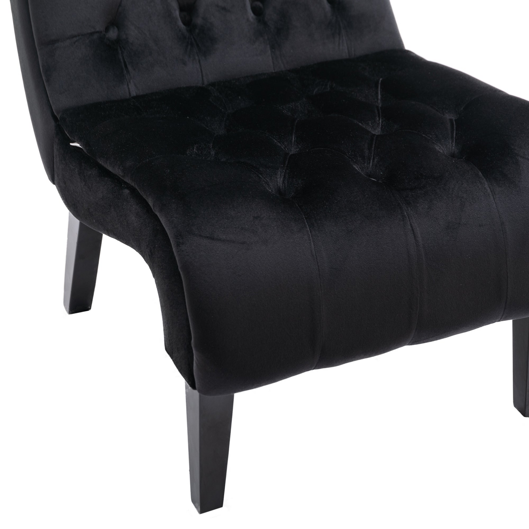 Modern Velvet Armless Accent Living Room Chair / Leisure Chair,Upholstered Fabric Button Comfortable Chair with Wooden Legs for Bedroom, Living Room, Office (Black Velvet)