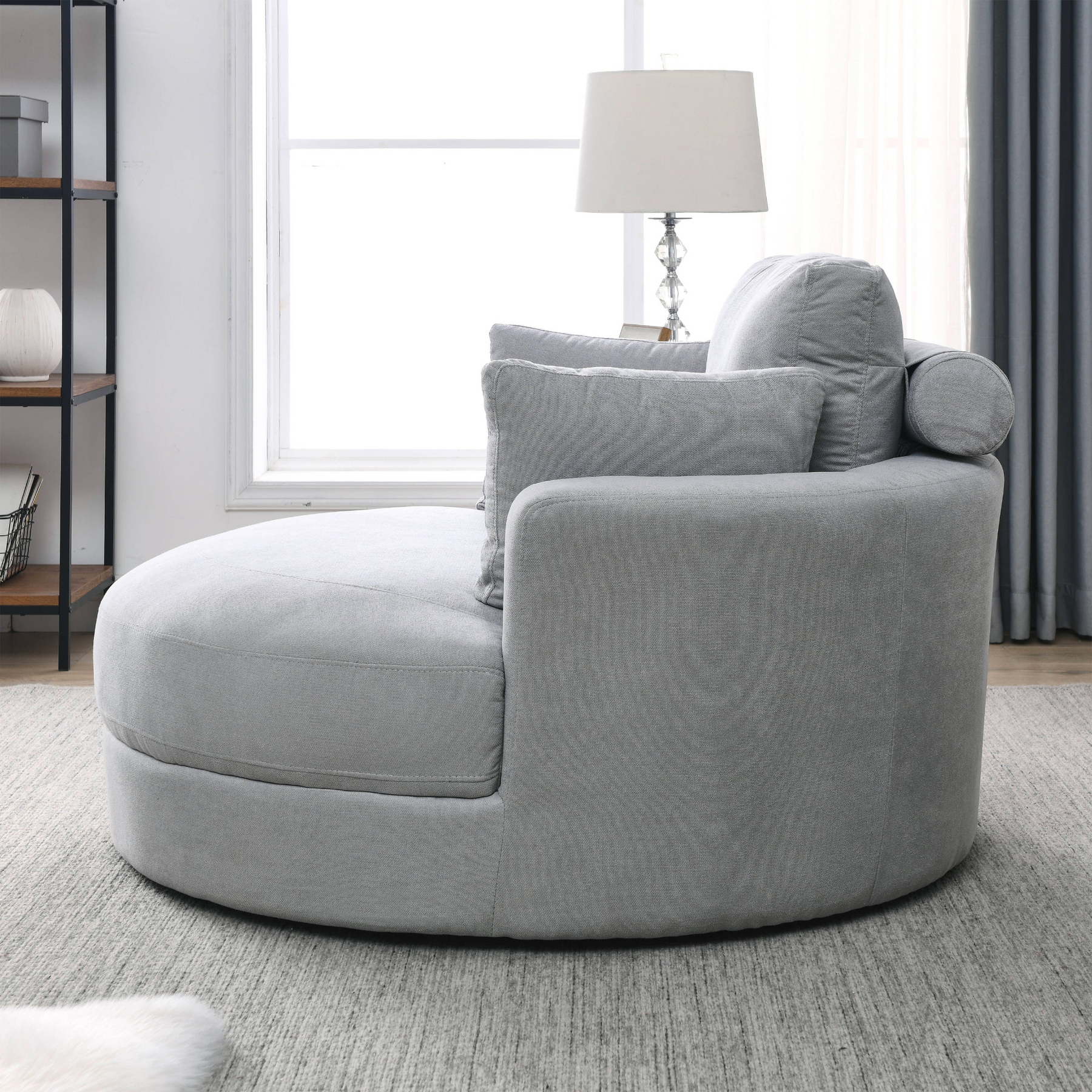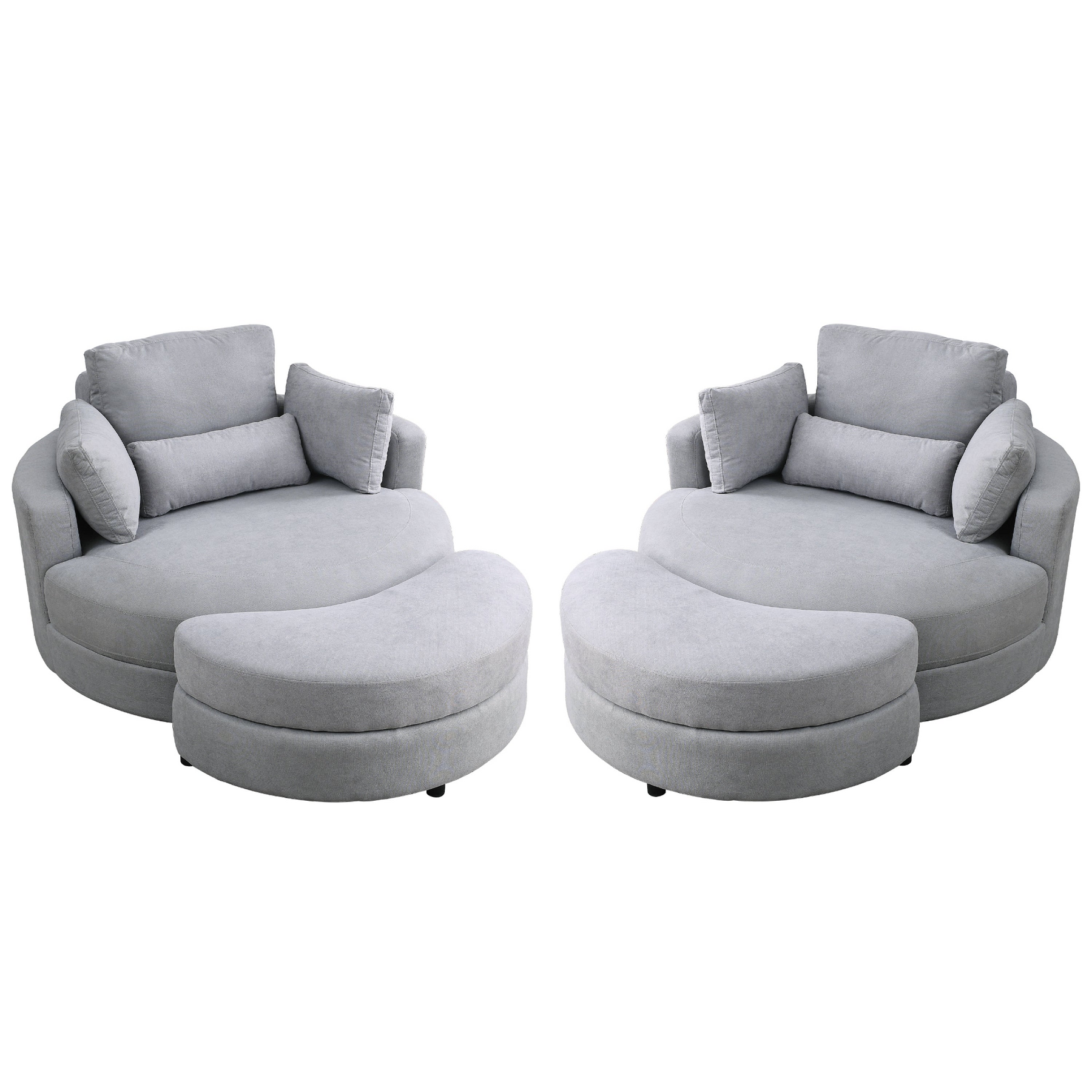 Swivel Accent Barrel Modern Grey Sofa Lounge Club Big Round Chair with Storage Ottoman Linen Fabric for Living Room Hotel with Pillows .2PCS