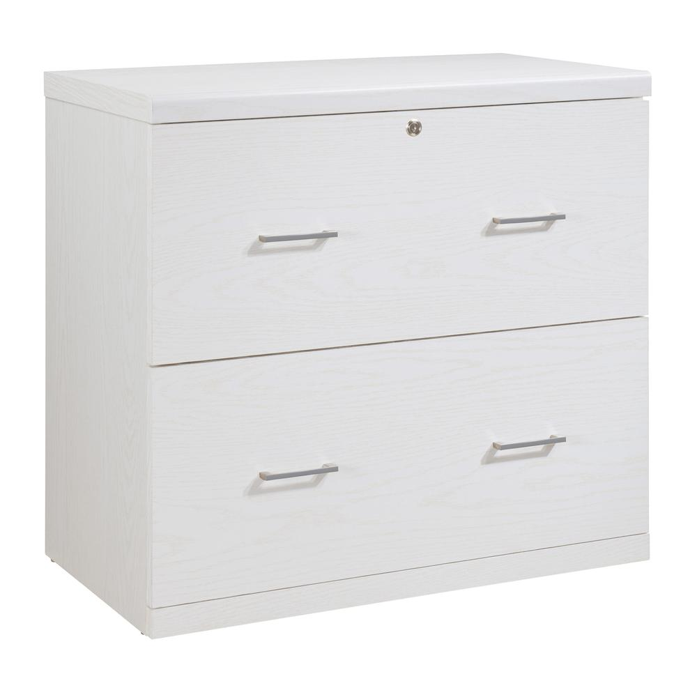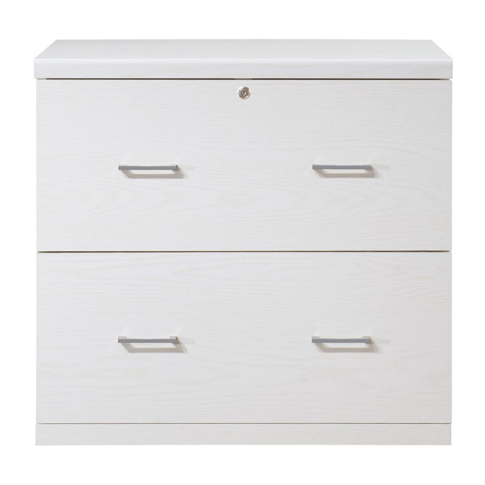 Keep everything organized and secure with our 2-Drawer, locking lateral file cabinet. Dual drawer pulls paired with euro-style easy glide hardware allows each double width drawer to open and close with ease. Both legal and letter size file capability with locking top drawer. Simplify assembly with Lockdowel™ fasteners, which are invisible, creating a tight joint and a finished look. The Lockdowel™ fastening system is designed to simply slide components into place for quick, sturdy assembly every time.