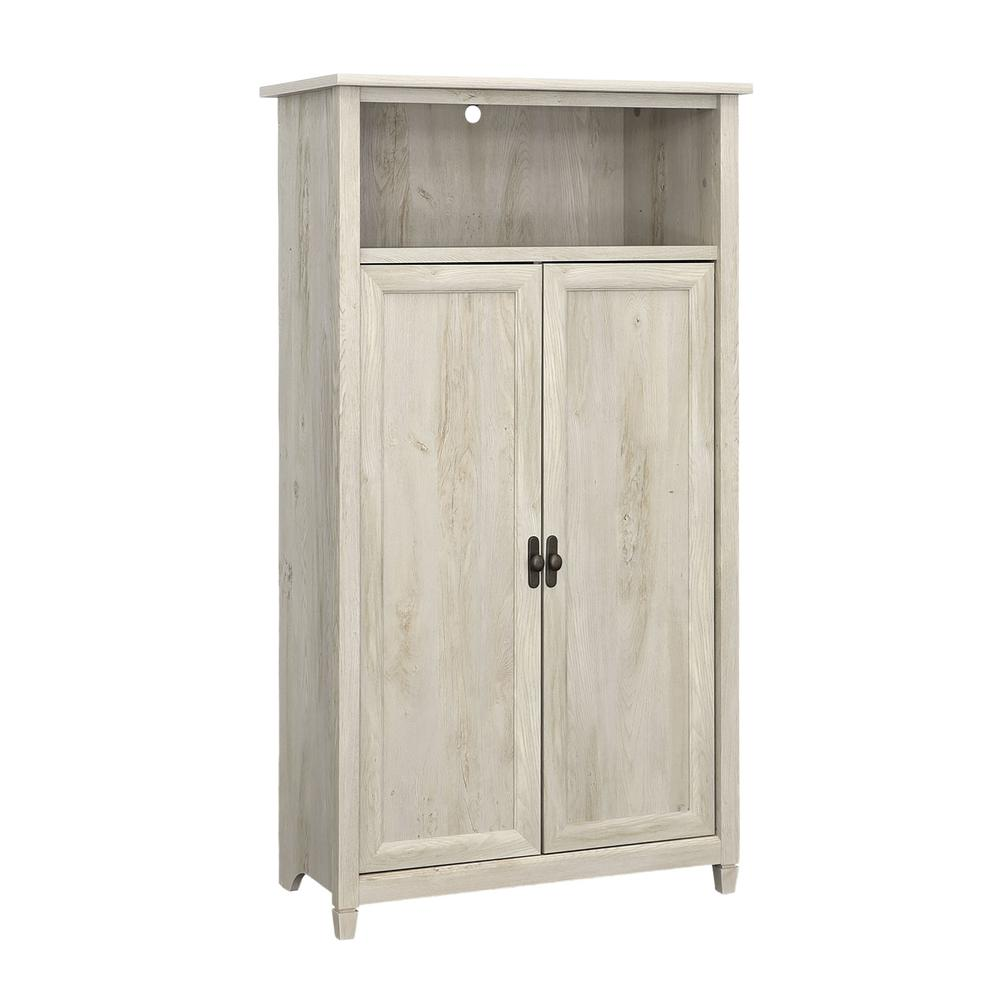 A cottage fairytale has come true with the two-door storage cabinet from the Edge Water collection. You wont find a wolf in a grandmothers clothing, but you will find a functional and practical double door storage cabinet dressed in the bright, white-washed natural hues of the Chalked Chestnut finish. Open the two, natural distressed woodgrain doors of this cottage style storage cabinet to magically find four hidden adjustable shelves. Enchanted by a myriad of storage options, you will find space for your red, hooded cloak, sturdy hiking boots, a warm quilt, and more inside this storage cabinet with open shelf. Above the doors, a full upper shelf features plenty of room for a tall atlas or collection of wildlife reference books, organizing totes or baskets for baked goods. The top and shelf surface of the storage cabinet with doors also offers sturdy space for additional display of photos of family and friends- so you never forget what grandma looks like.