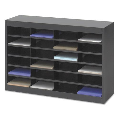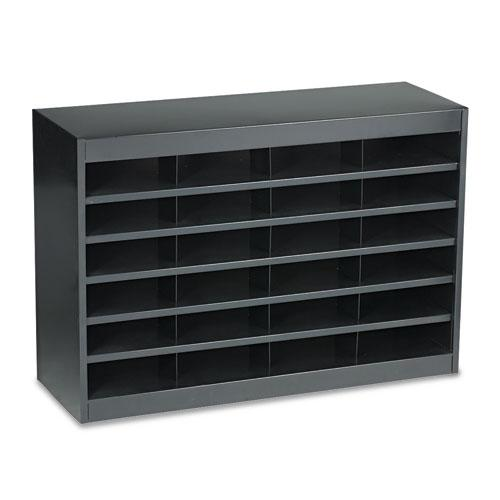 Store and organize forms, catalogs, brochures. 3" high filing space per compartment, which holds up to 750 sheets of paper. Steel frames, shelves and vertical dividers; fiberboard back. Interlocking design of shelves and dividers for extra strength. Shelft fronts serve as label holders. Quick-connect, uni-lock steel shell Use on floor, desk or mounted to a wall. All hardward included. Assembly required.