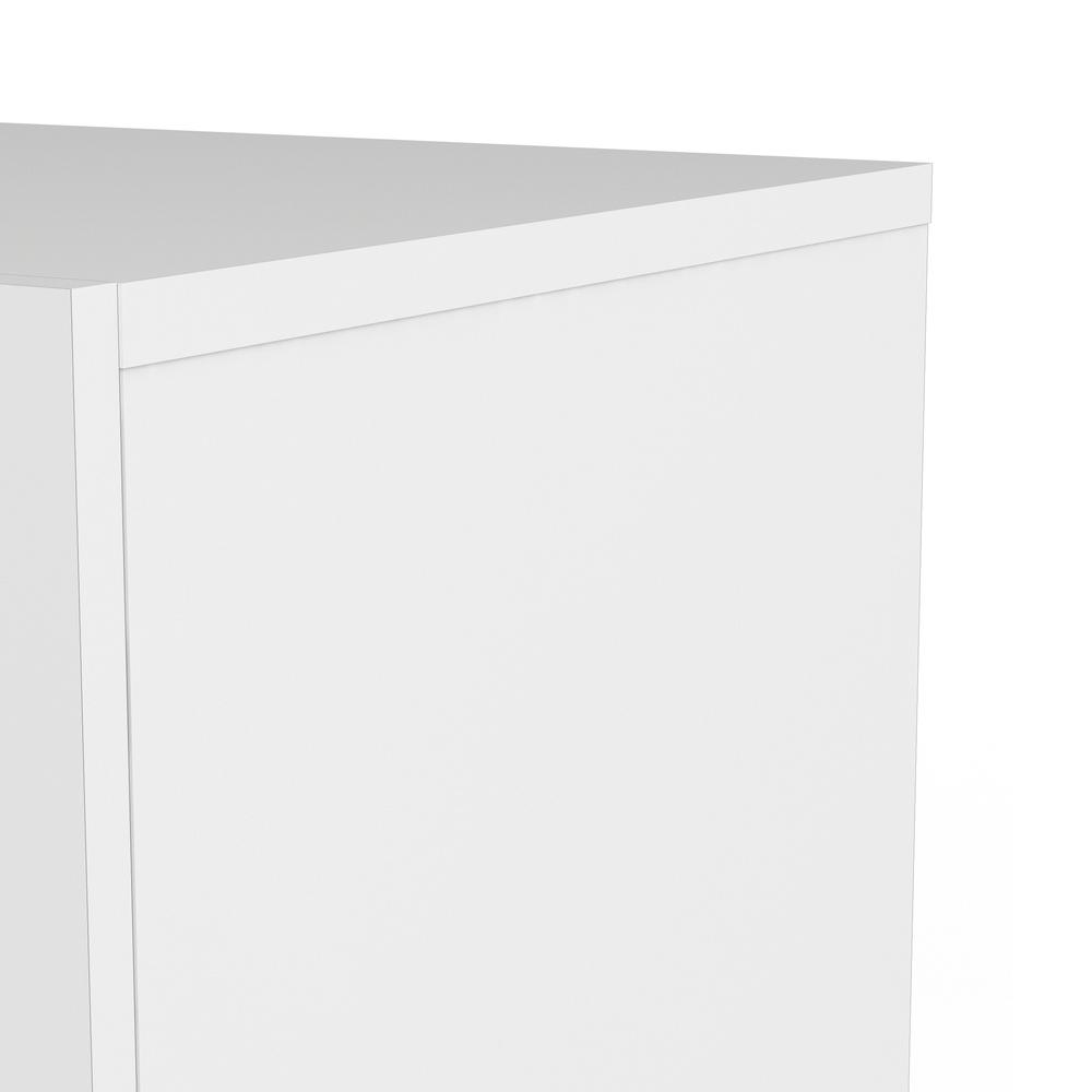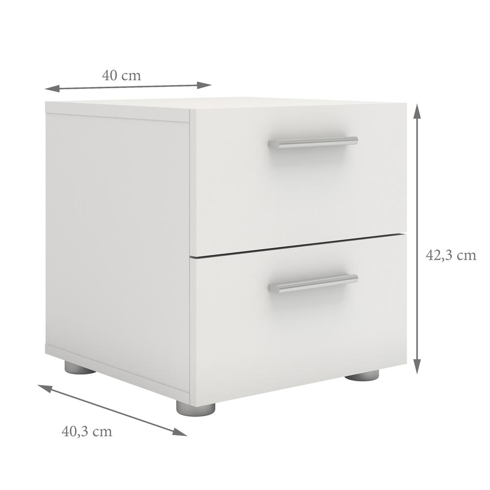 Contemporary style Two drawers for storage Modern plastic silver color bar handles Drawers retract smoothly on metal glides with built-in safety stops Suitable for small rooms