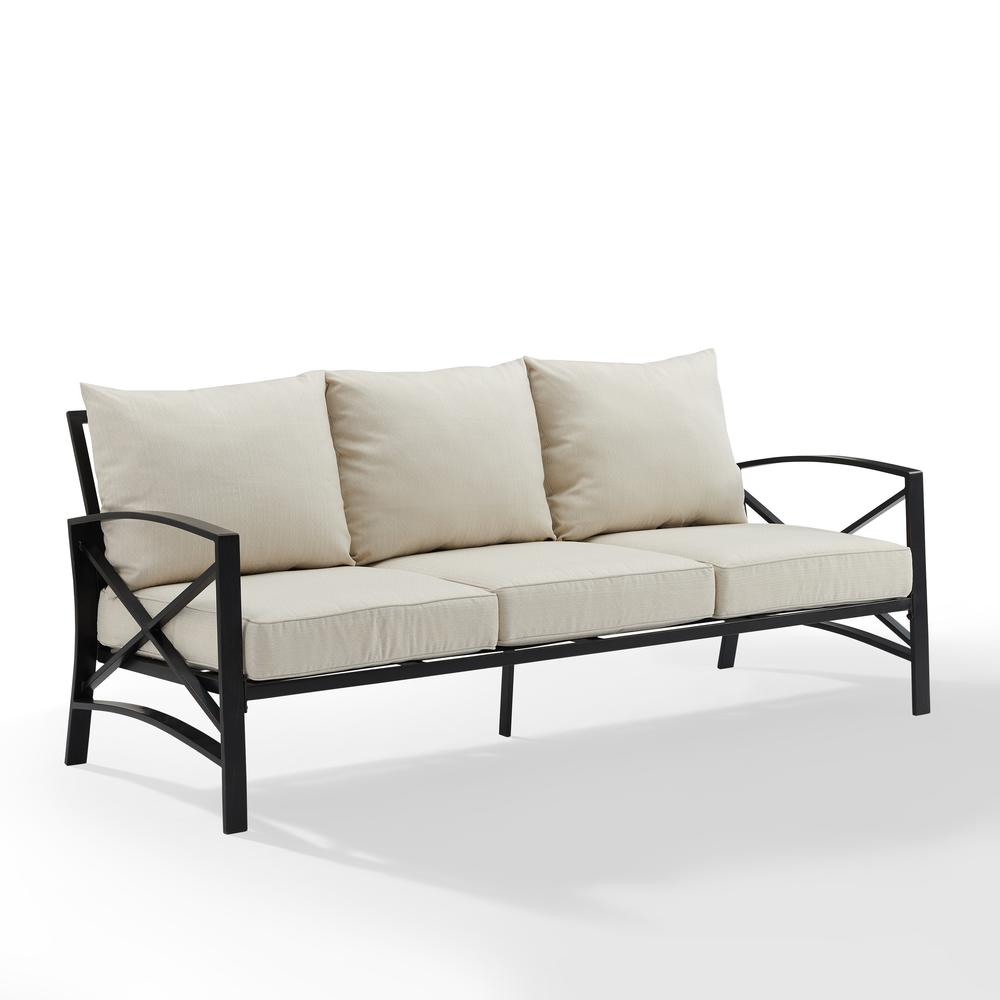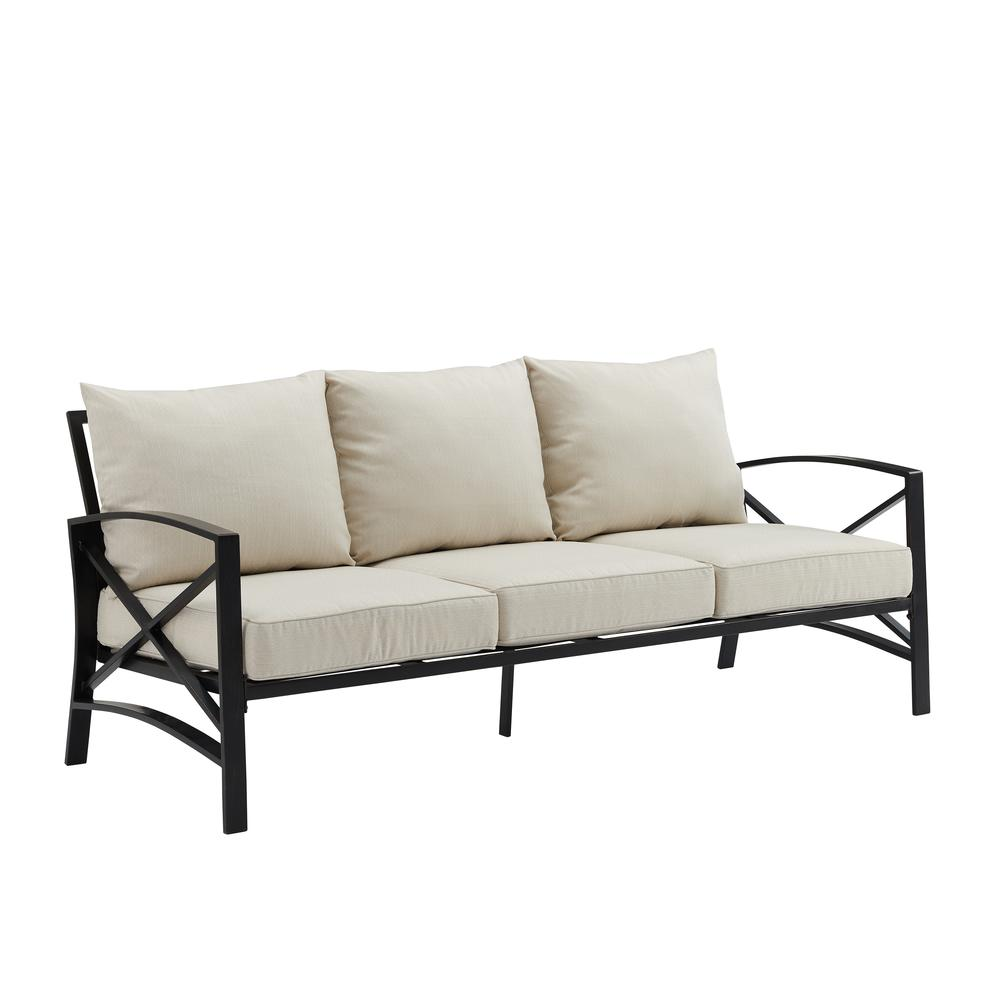 ALL-WEATHER PATIO FURNITURE: Designed to withstand the elements, this outdoor sofa is made from sturdy, weather-resistant steel. The classic oil-rubbed bronze finish provides additional protection as well as style. Experience ultimate comfort with the patio sofa's 5" thick seat cushions and moisture-resistant high-grade cushion cores. The cushion covers are made from high-performance, solution-dyed polyester that resists sun fade and abrasion. EASY CARE: The oatmeal-colored cushion covers add a pop of color that enhances your outdoor space. They are removable and machine-washable, ensuring your outdoor couch remains a favorite spot for relaxation. TRADITIONAL DESIGN: The classic X-back design adds a touch of traditional charm while providing comfortable seating for up to two people. This outdoor metal sofa looks great on a patio, balcony, or porch. AMERICAN LEGACY: Inspired by over 100 years of the Crosley legacy, Crosley Furniture offers style for every space, from retro to modern. Crosley products are proudly designed in the USA and come with USA-based customer support. Constructed of sturdy weather-resistant steel Oil-rubbed bronze outdoor furniture High-performance solution-dyed polyester cushion covers resist sun fade and abrasion to keep your outdoor patio furniture looking good Moisture-resistant high grade cushion cores Removable cushion covers are machine washable Outdoor couch provides seating for up to three 5" thick seat cushion Can be used as balcony furniture or porch furniture