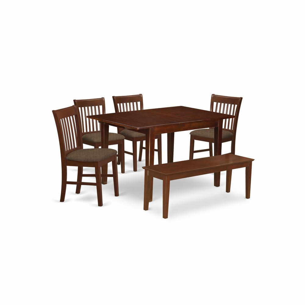 6 PC Kitchen table set with Rectangular Table features 12 in butterfly leaf and 4 microfiber upholstered seat chairs plus one 51 in long dining bench with wood seat. Table Dimensions: Length 42 / 54; Width 36; Height 29.5. Chair Dimensions: Length 18; Width 17; Height 36. Bench Dimension: Length 51; Width 15; Height 17.75. Fine quality set for dining room which constructed with all Asian Hardwood. Completely no MDF, veneer, laminate made use of in our items. Small dinette table offers twelve In self storing expansion leaf That Is Stored Right Beneath Table Top