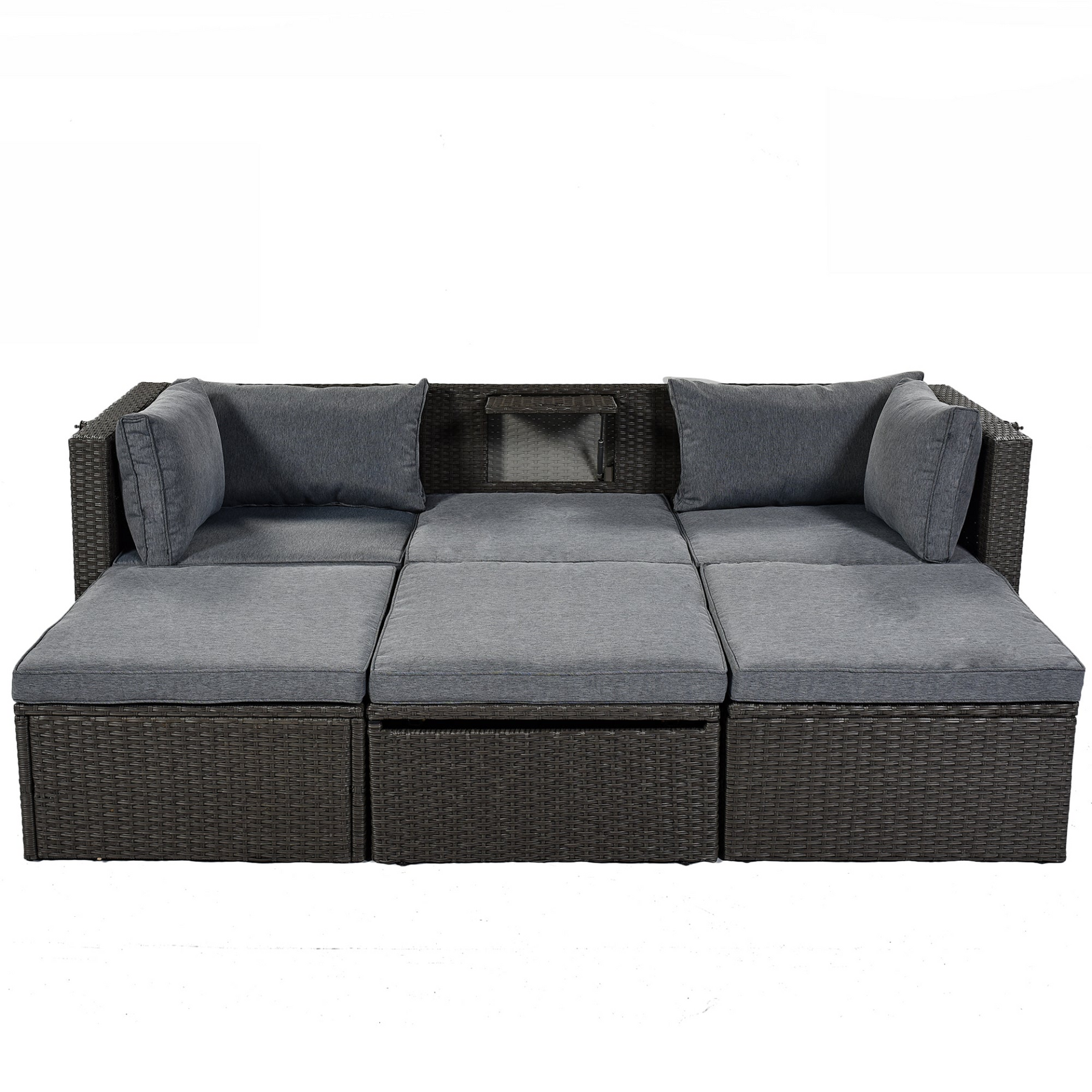 - The seat capacity of this set with retractable canopy capacity can be 6 if you separate every single part, while when you combine them, you will get a rectangle sunbed, enjoying your sunshine.
