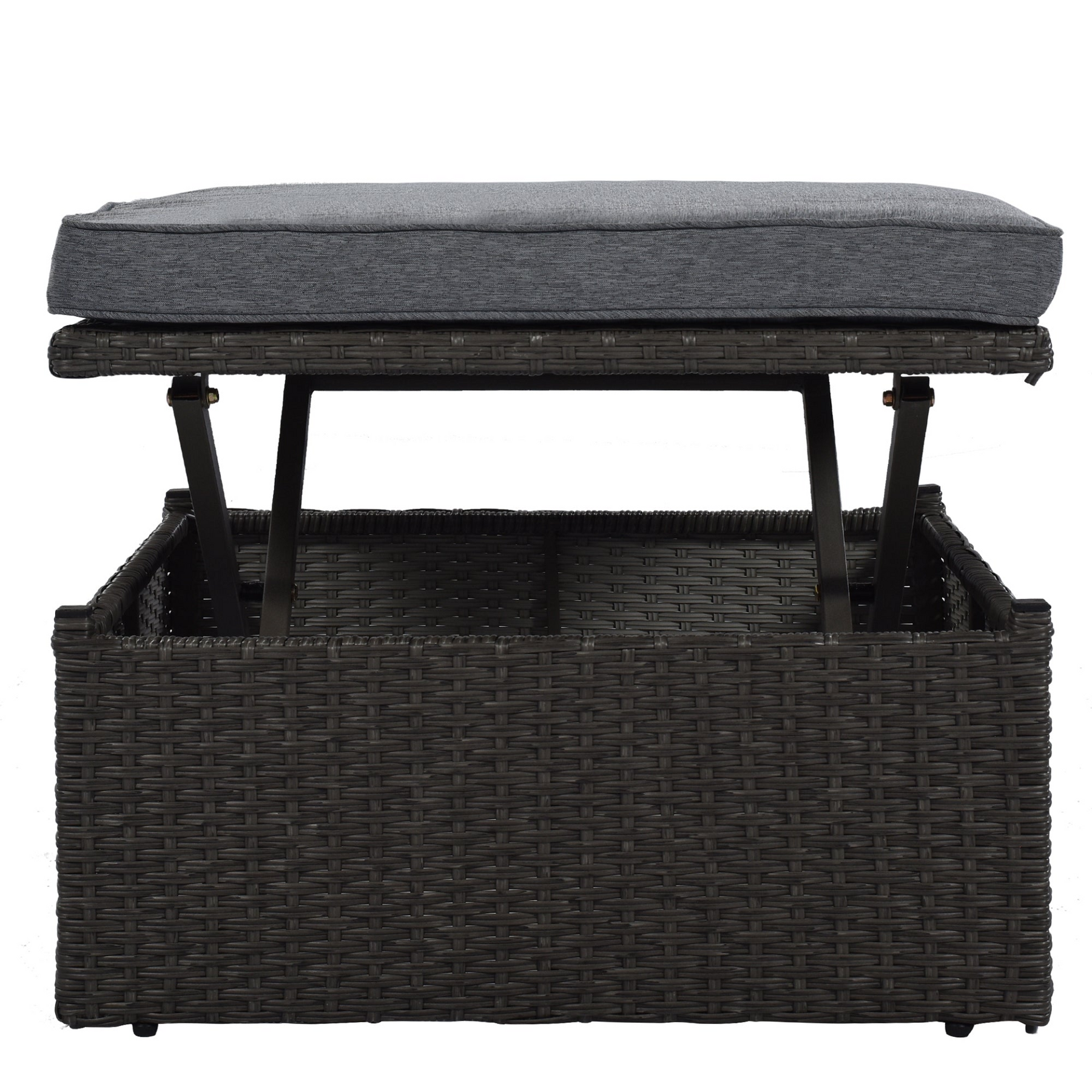 - As for the functions, there is a foldable board on the middle back of the three seat sofa for putting cups or your mobile phone. The ottoman with lifting top can be used as a table while afternoon tea. Far left of our functional three-person sofa is able to recline with FIVE levels to allow you enjoy your leisure time at your favorite angle.