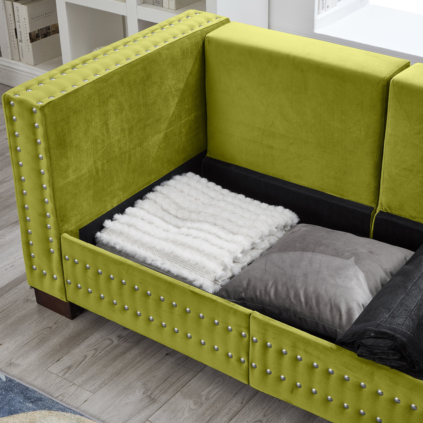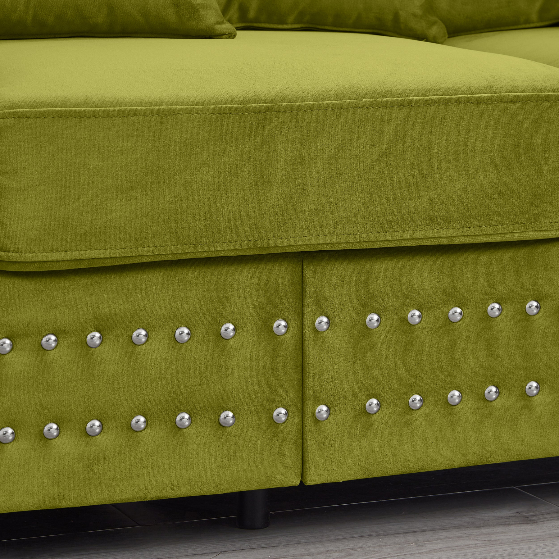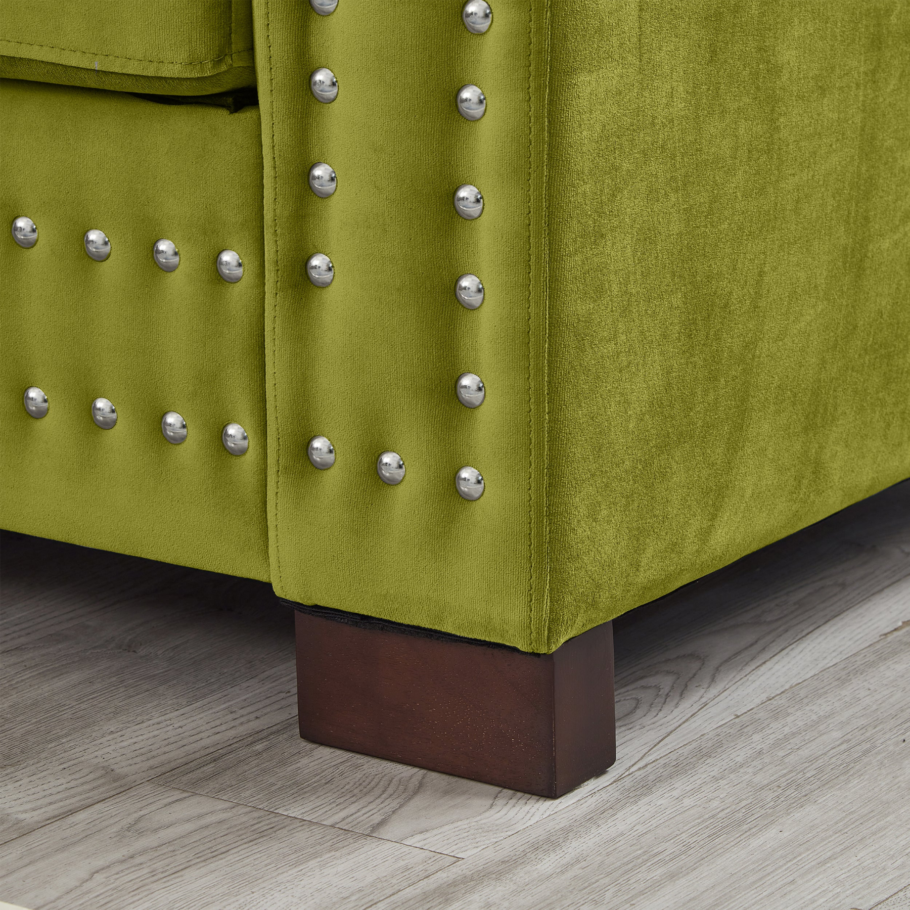 Modern Design Living Room Sofa Square armrest with Silver Nails Decoration Upholstered Velvet Couch Green
